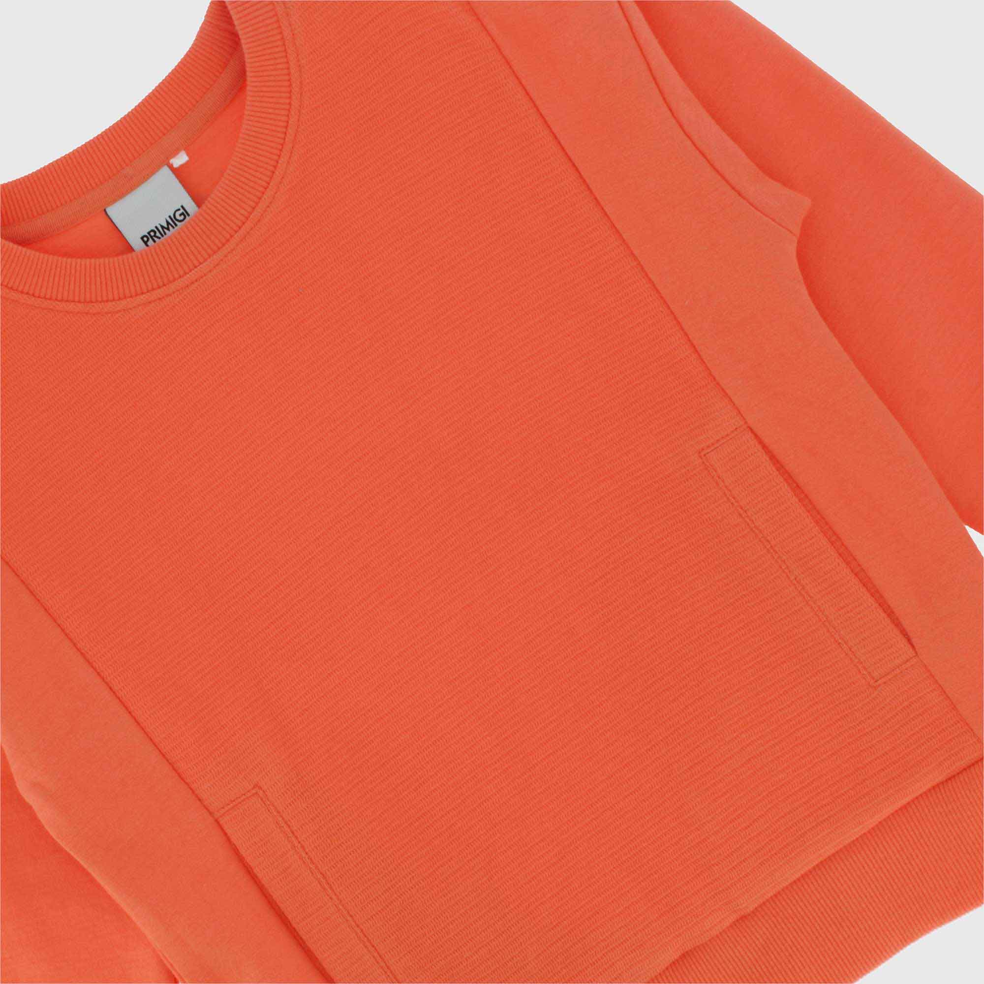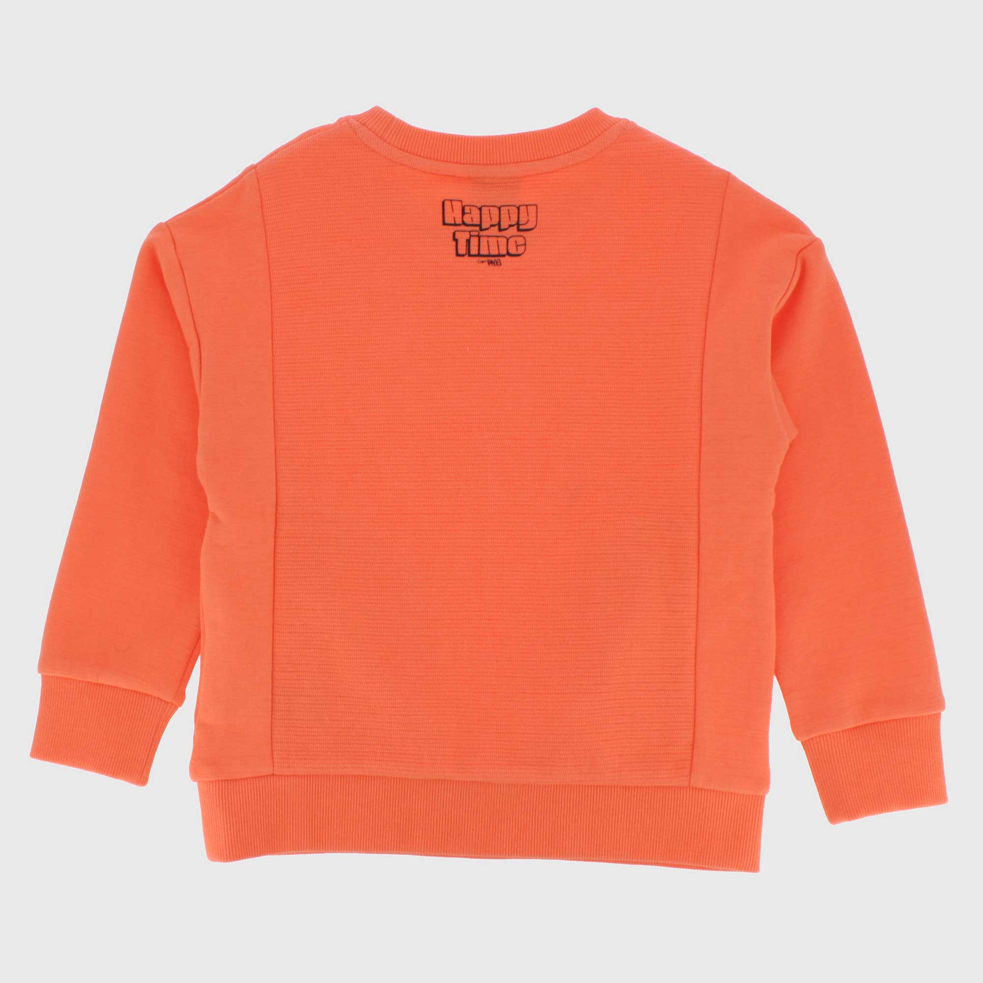 Sudadera cuello redondo, mangas largas. Bolsillo oculto en la parte delantera. Parte trasera estampada. Cuello, puños y parte inferior pana.
