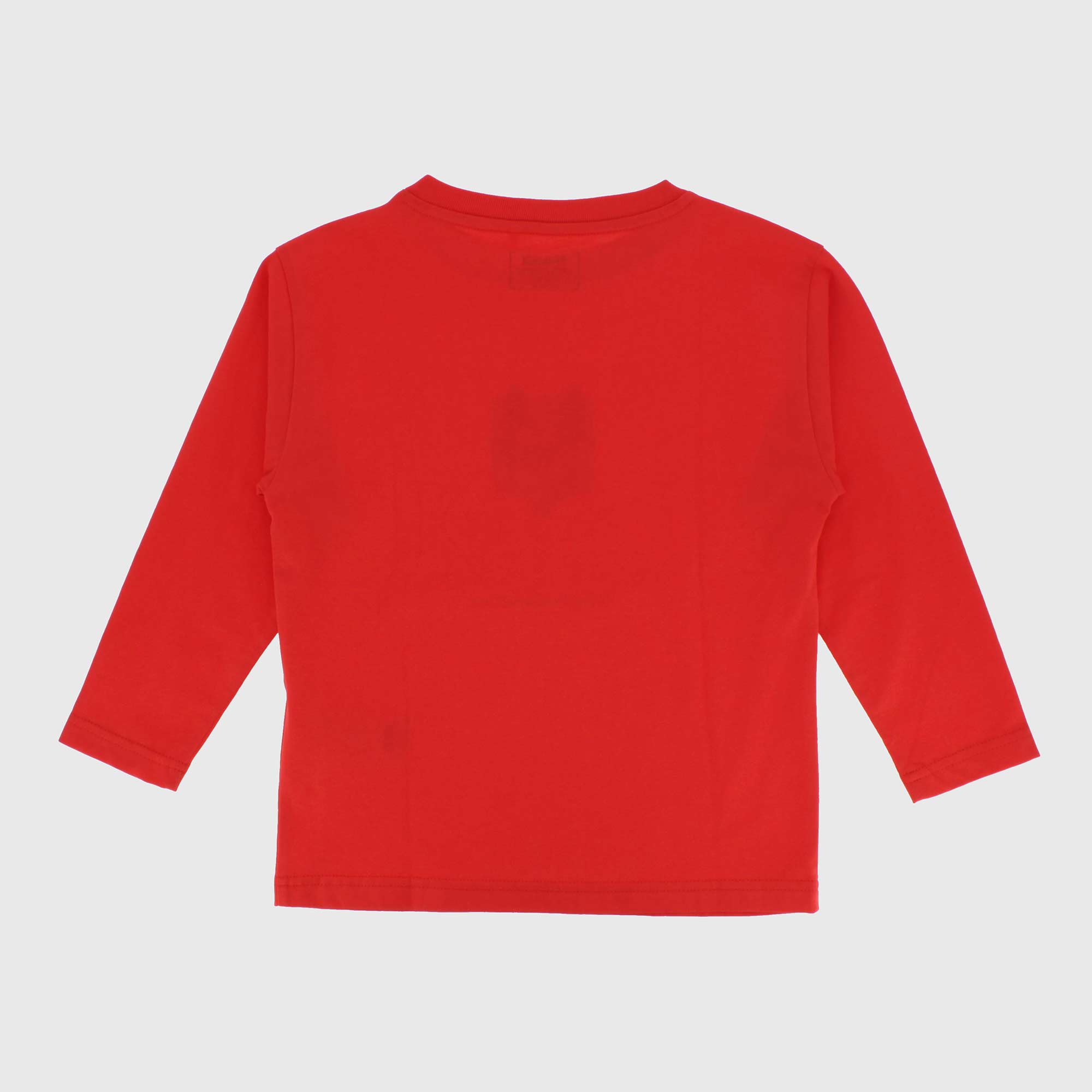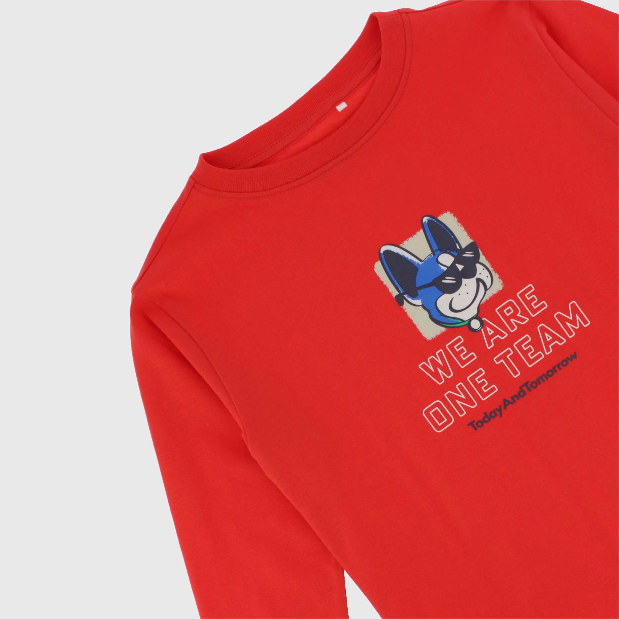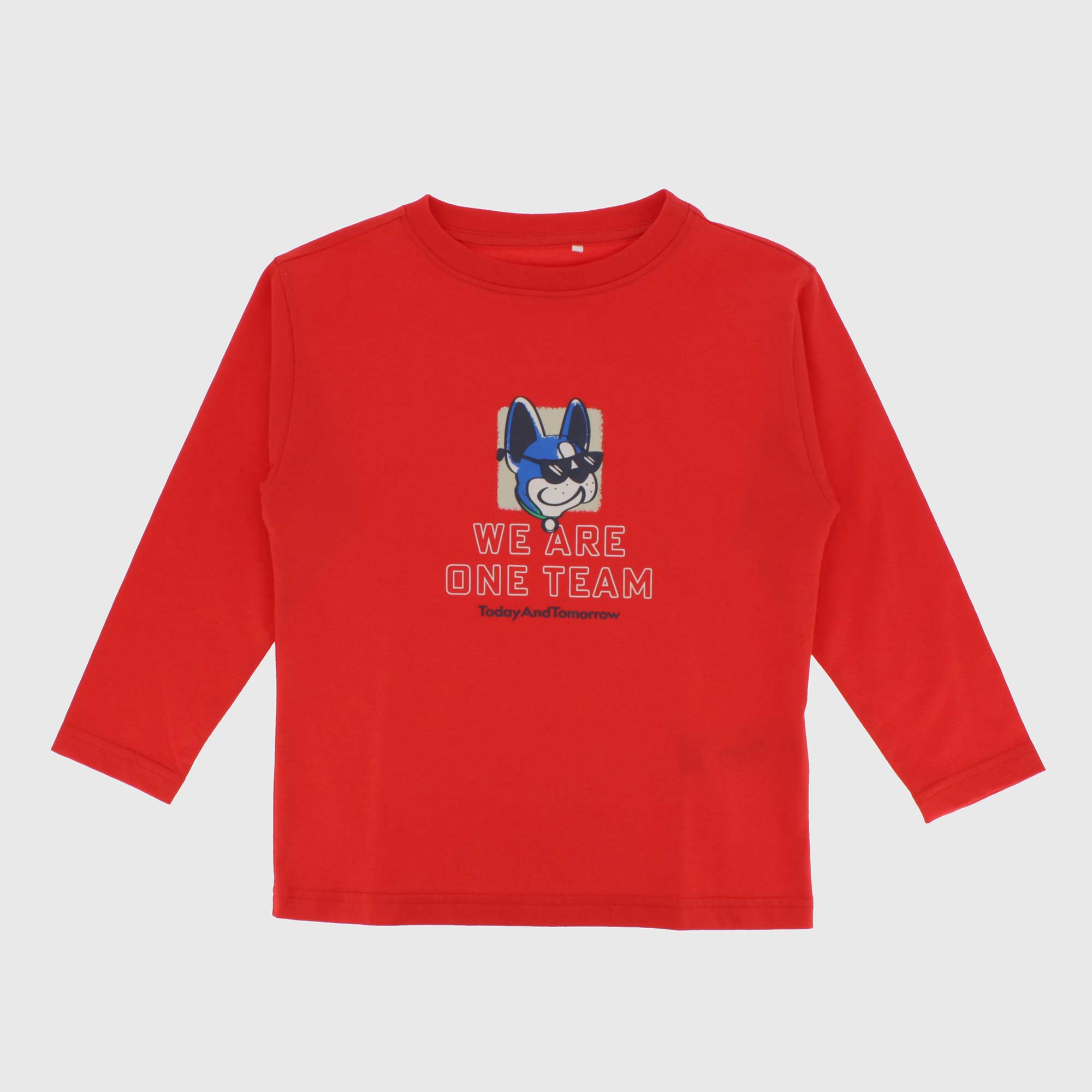 Camiseta oversize de tejido tipo jersey, cuello redondo, mangas largas. Parte delantera estampada.