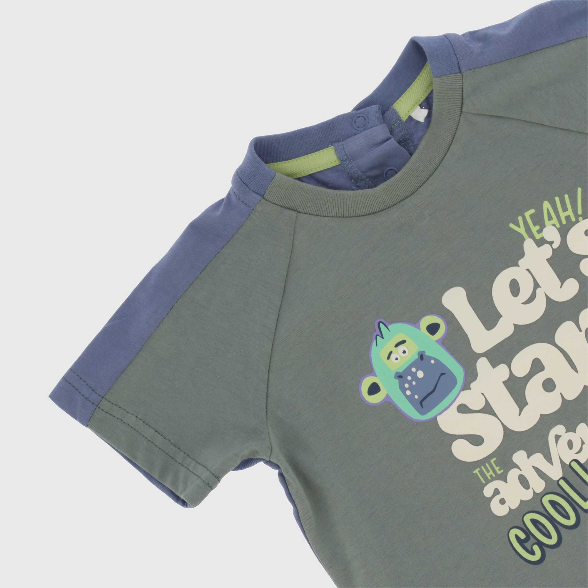Camiseta oversize de tejido tipo jersey, cuello redondo, mangas cortas. Cierre con botones automáticos en la parte trasera. Parte delantera estampada en relieve.
