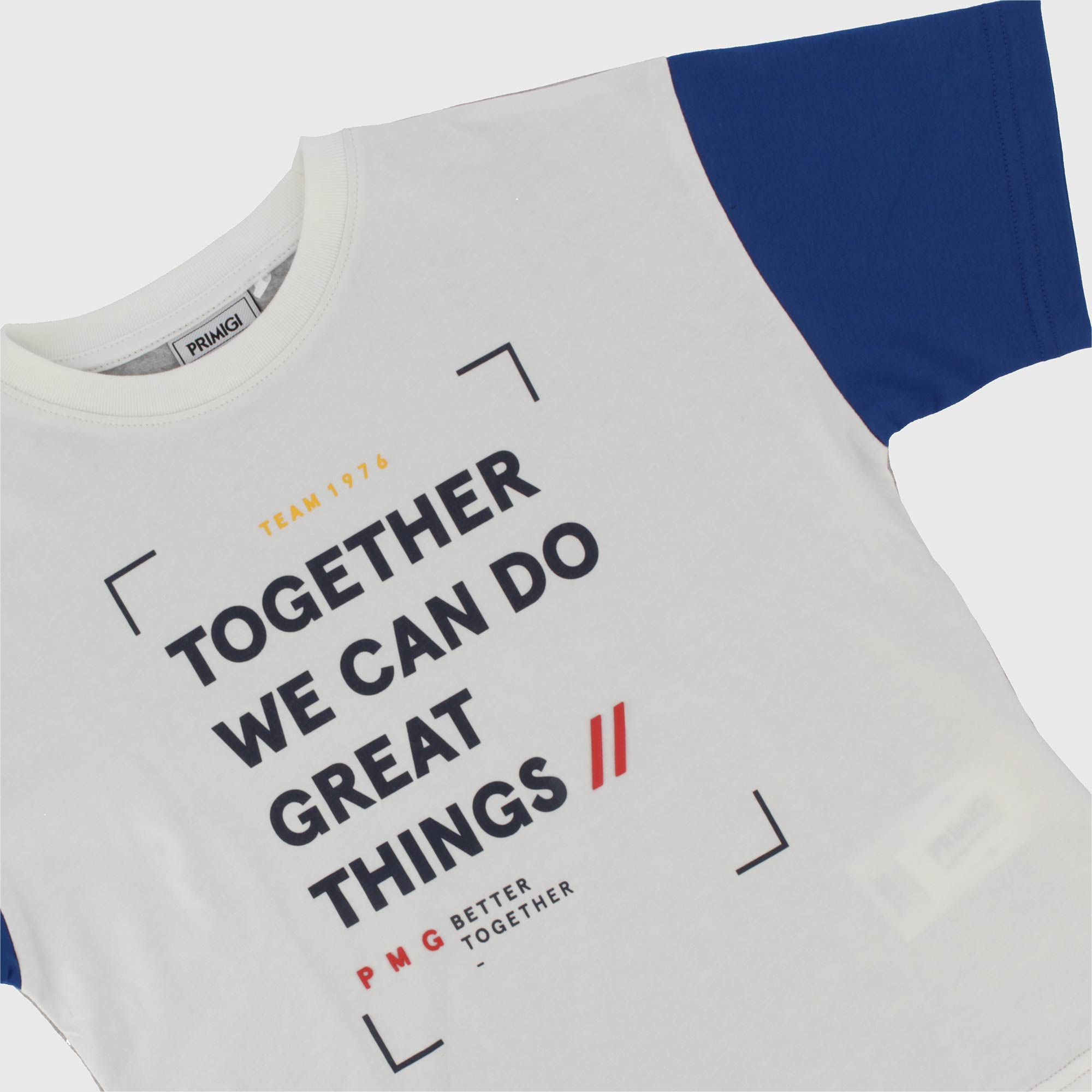 Camiseta de tejido tipo jersey, cuello redondo, mangas cortas. Parte delantera y trasera estampadas.