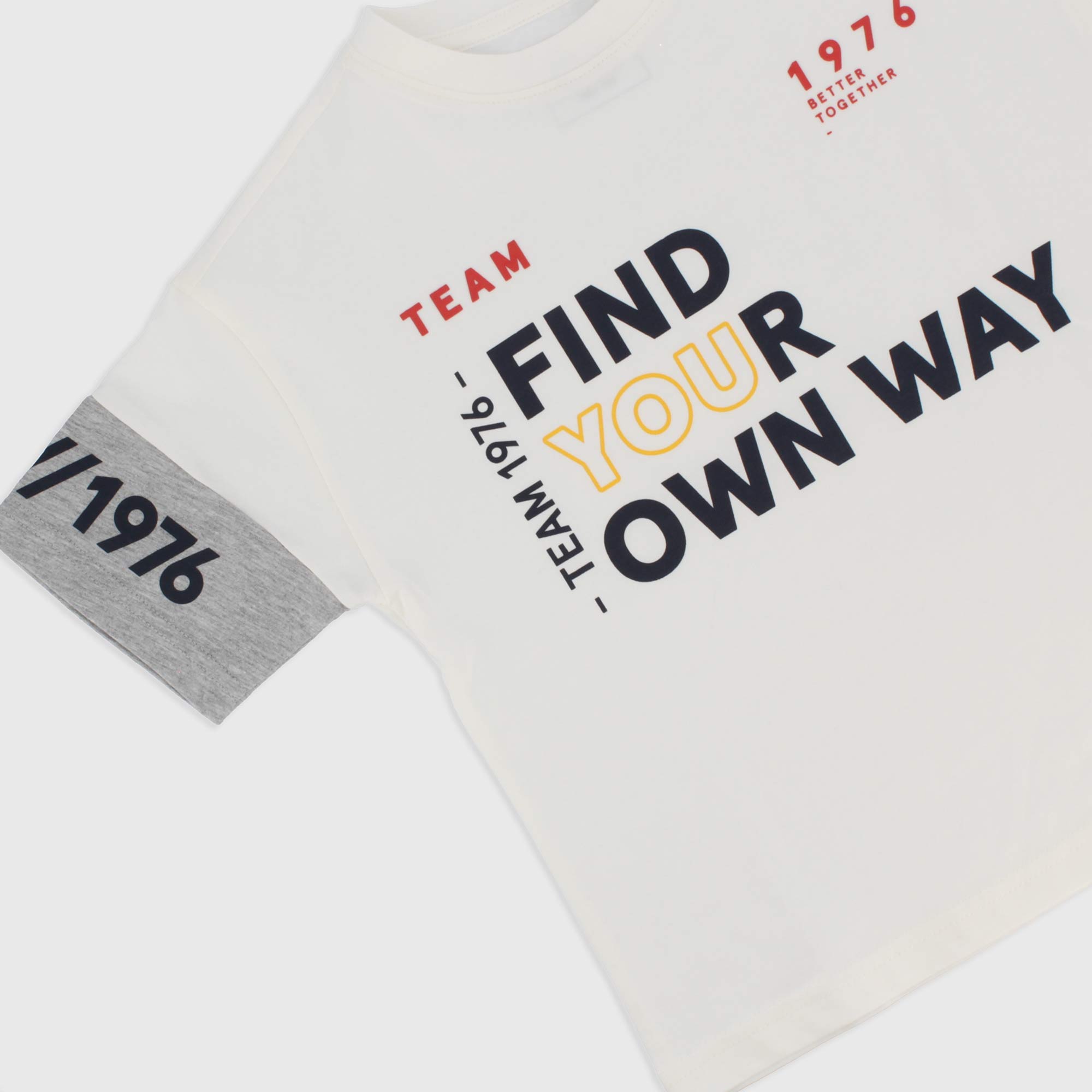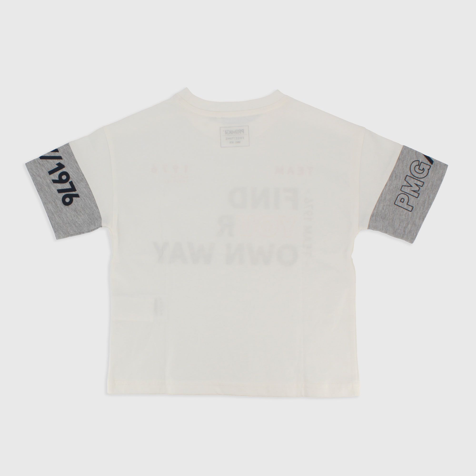 Camiseta de tejido tipo jersey, cuello redondo, mangas cortas. Parte delantera estampada con detalles de alta definción y logo en la parte trasera.