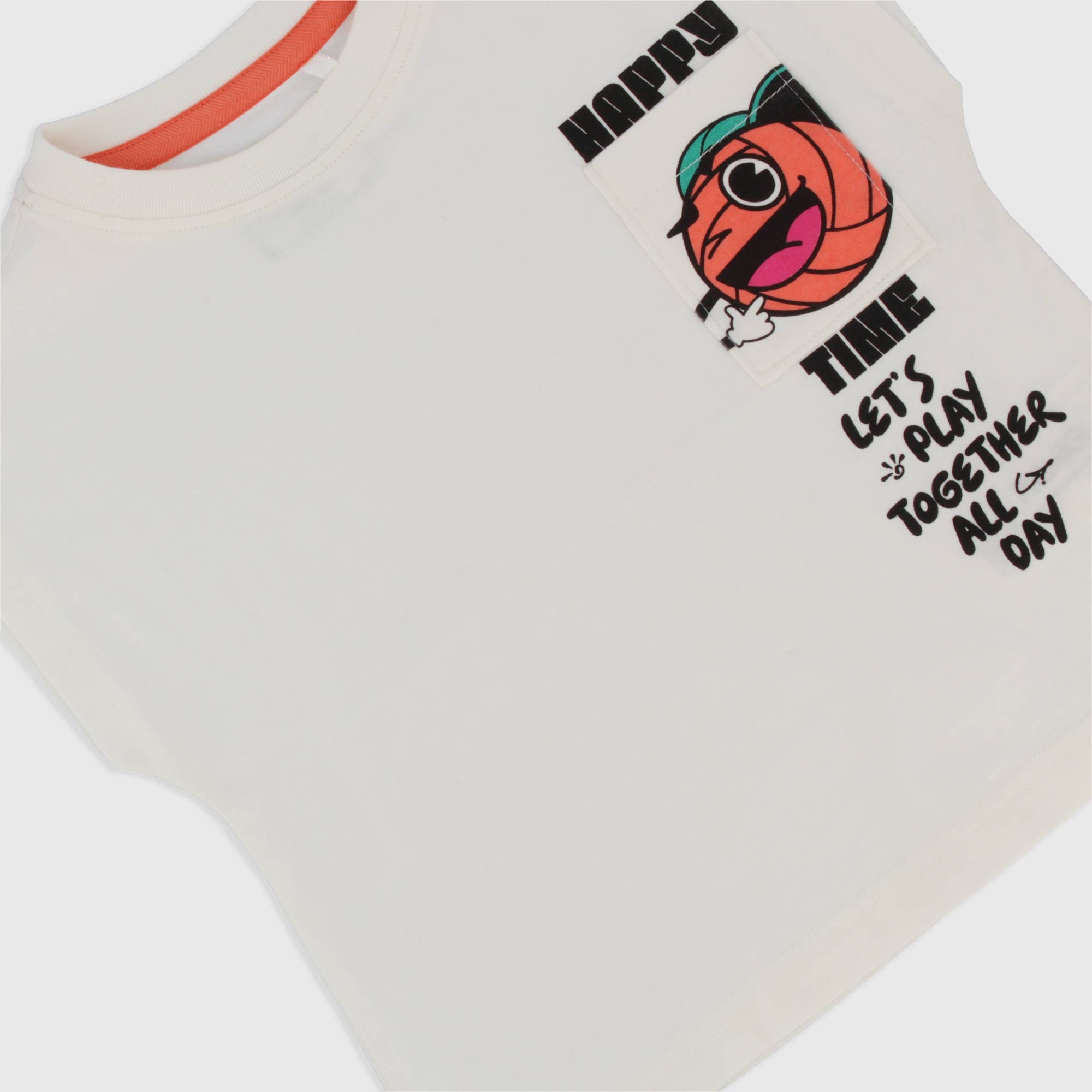 Camiseta de tirantes oversize de tejidot ipo jersey, cuello redondo. Cierre con botones automáticos en el hombro. Bolsillo estampado en el pecho.