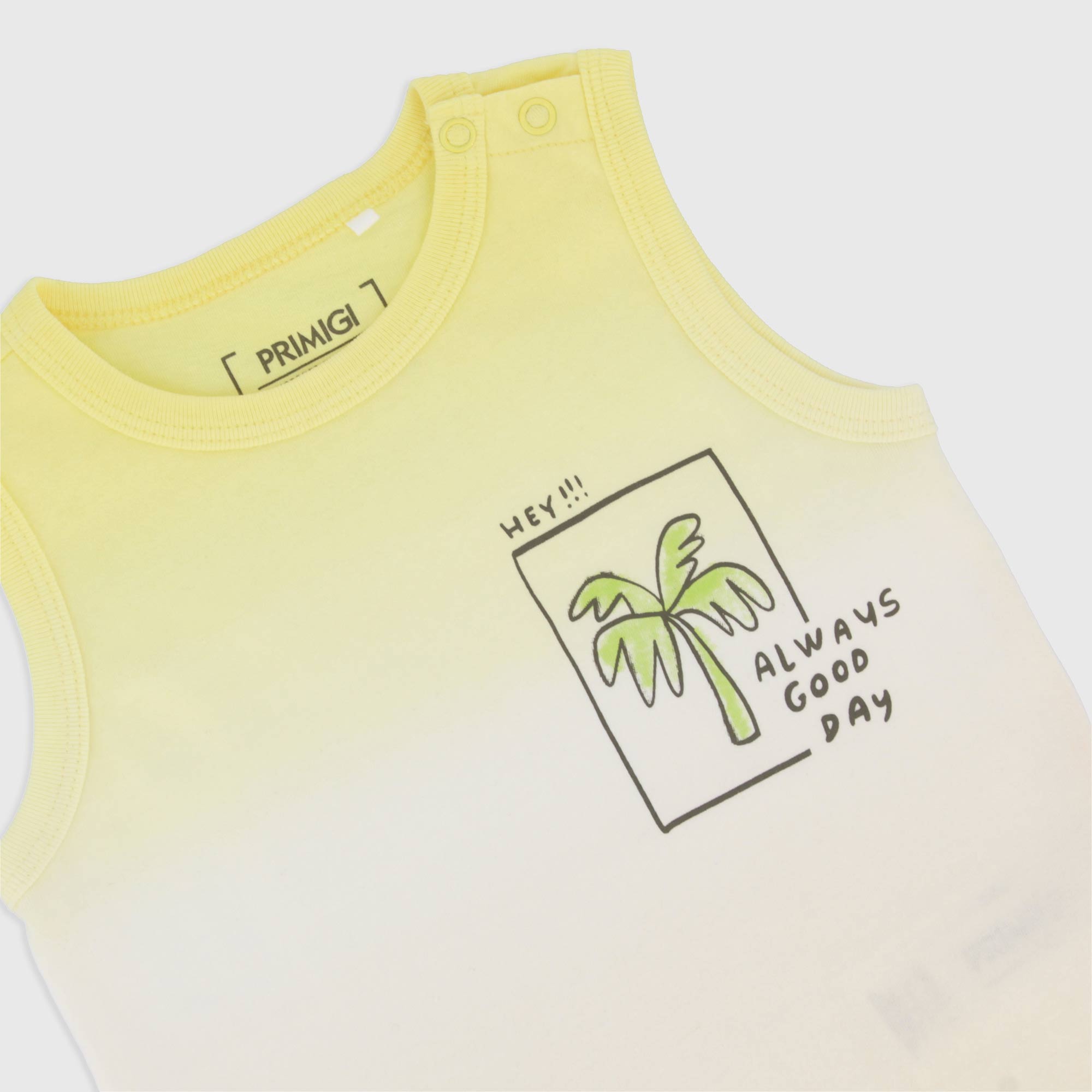 Camiseta de tirantes de tejido jersey degraddo, cuello redondo. Cierre con botones automáticos en el hombro. Parte delantera estampada.