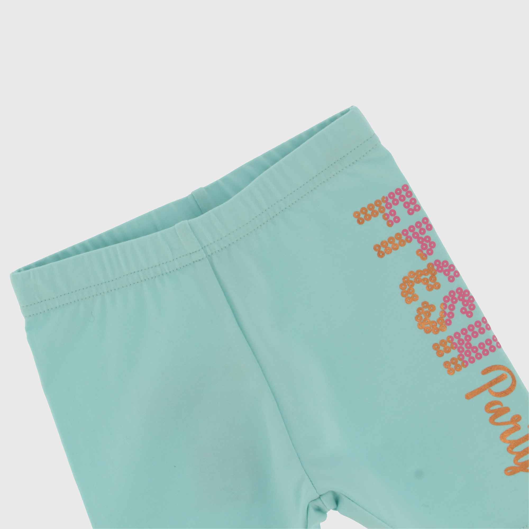 pantalón ciclista de tejido tipo jersey con cintura elástica. Parte lateral estampada con adorno laminados.