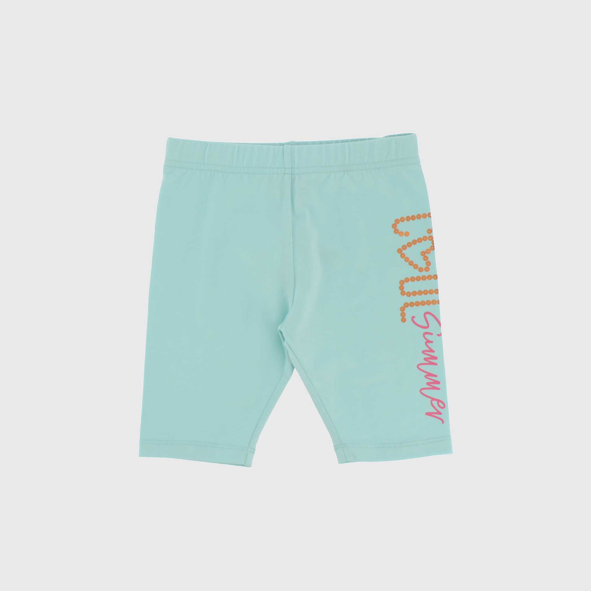 pantalón ciclista de tejido tipo jersey con cintura elástica. Parte lateral estampada con adorno laminados.