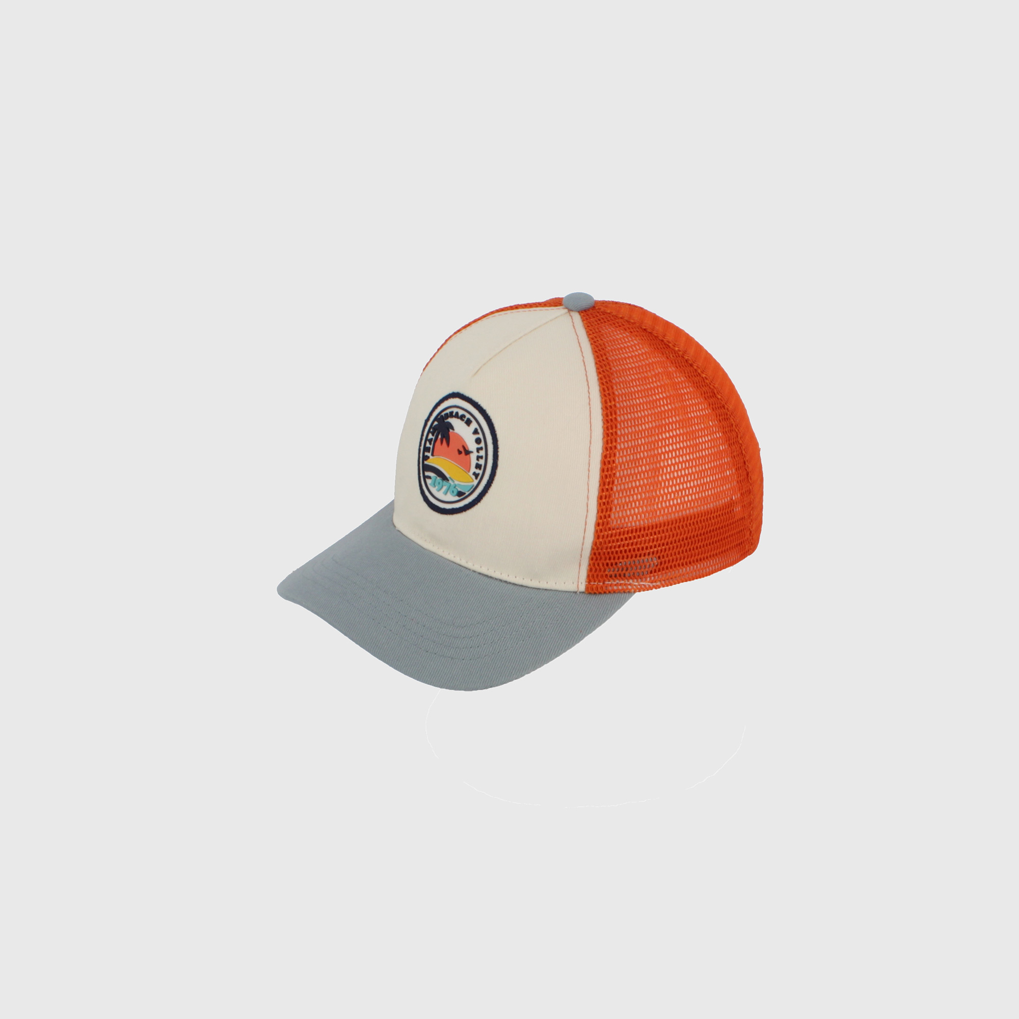 Gorro baseball bordado en relieve y estampado de goma. Parte trasera de microred y banda ajustable de plástica en la parte trasera.