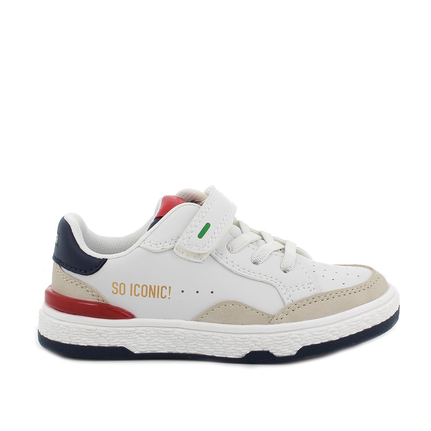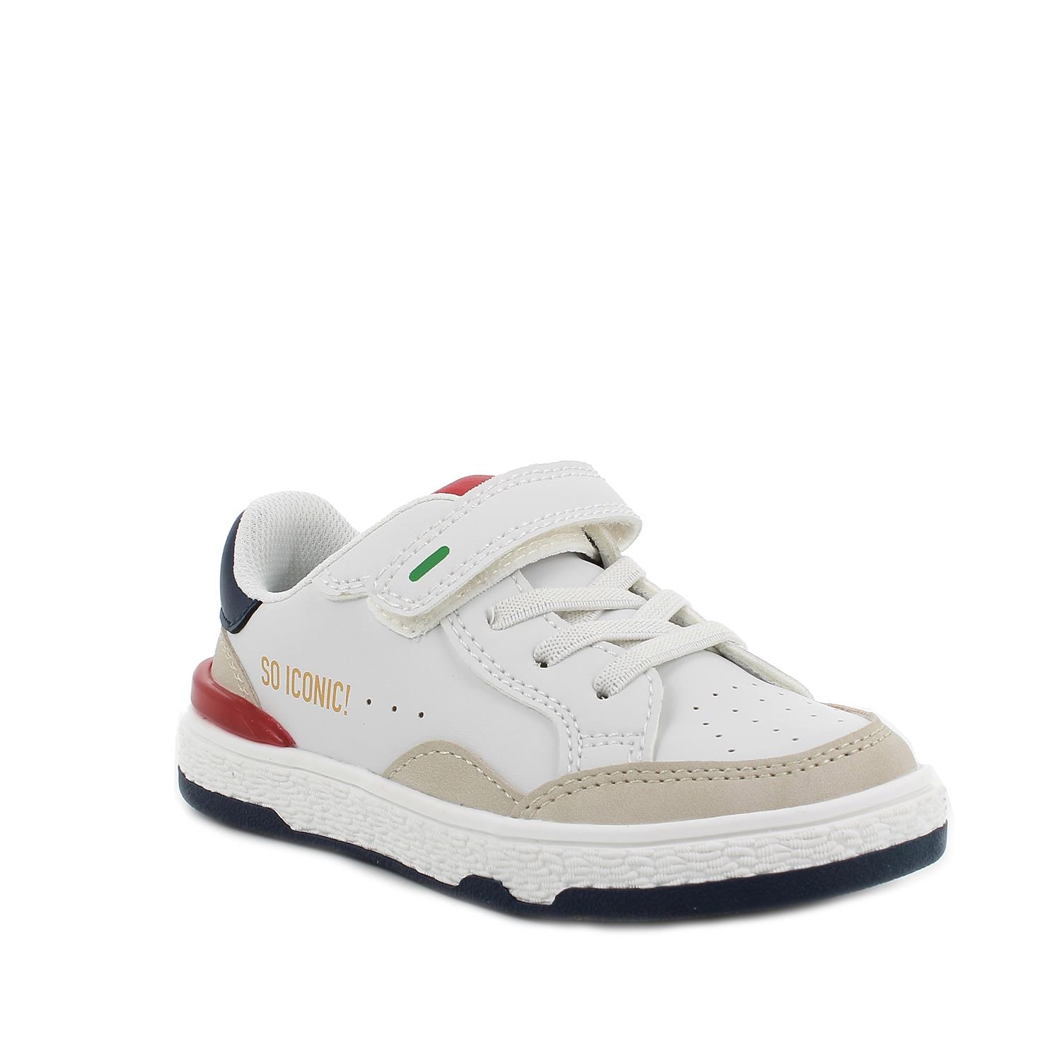 Zapatillas deportivas bajas, con práctico cierre elástico y velcro en el tobillo. Tienen la puntera redonda para dejar espacio a los dedos. El forro es de material técnico. La suela es plana y resistente. La plantilla es extraíble y está recubierta de piel para asegurar transpirabilidad e higiene.