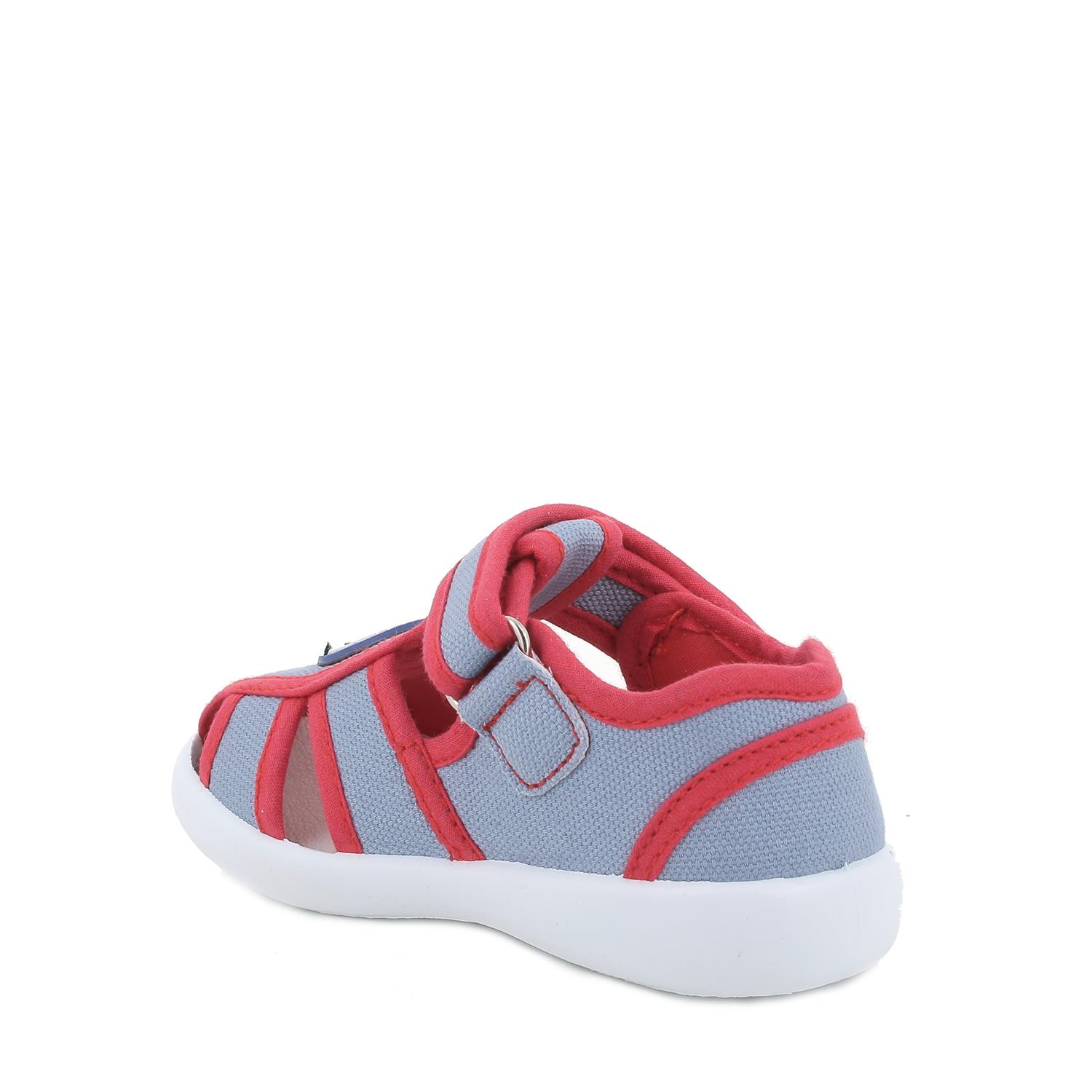 Las sandalias cerradas de tela son un gran clásico del verano para las pequeñas aventureras. También son divertidas y coloridas. Transpirables y ligeras, la parte superior es envolvente y protege al pie dejándole la libertad necesaria. La tira de velcro asegura un ajuste correcto. El apoyo es delicado e higiénico gracias a la plantilla de piel. La suela tiene una gran flexibilidad para facilitar la pisada.
