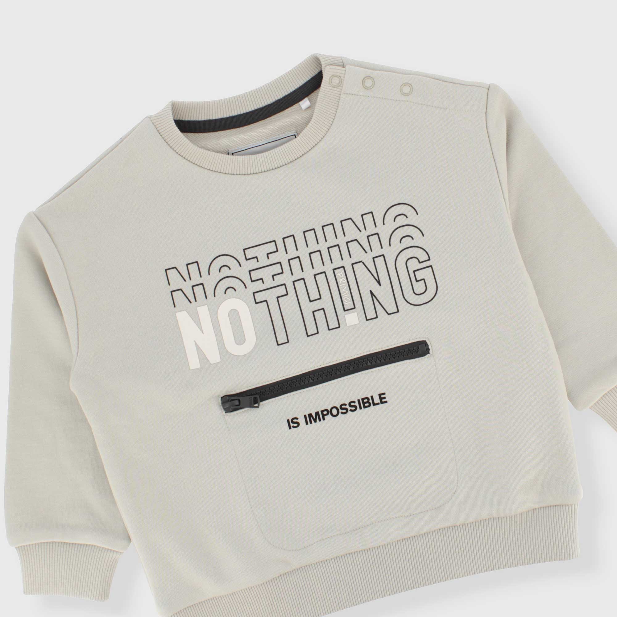 Sudadera cuello redondo, mangas largas. Cierre con botones automáticos en el hombro. Parte delantera estampada y bolsillo canguro con cremallera en contraste. Cuello, puños y parte inferior pana.
