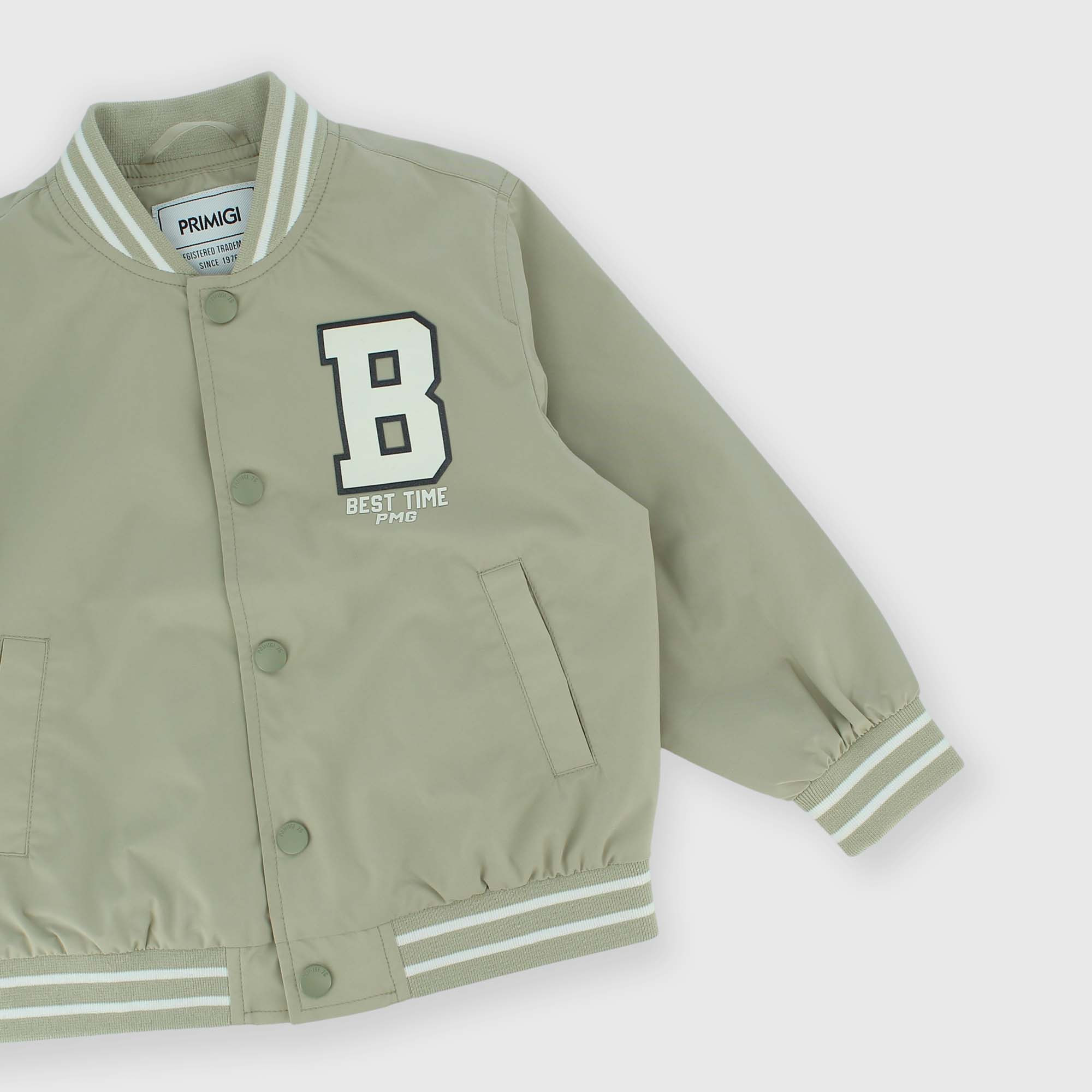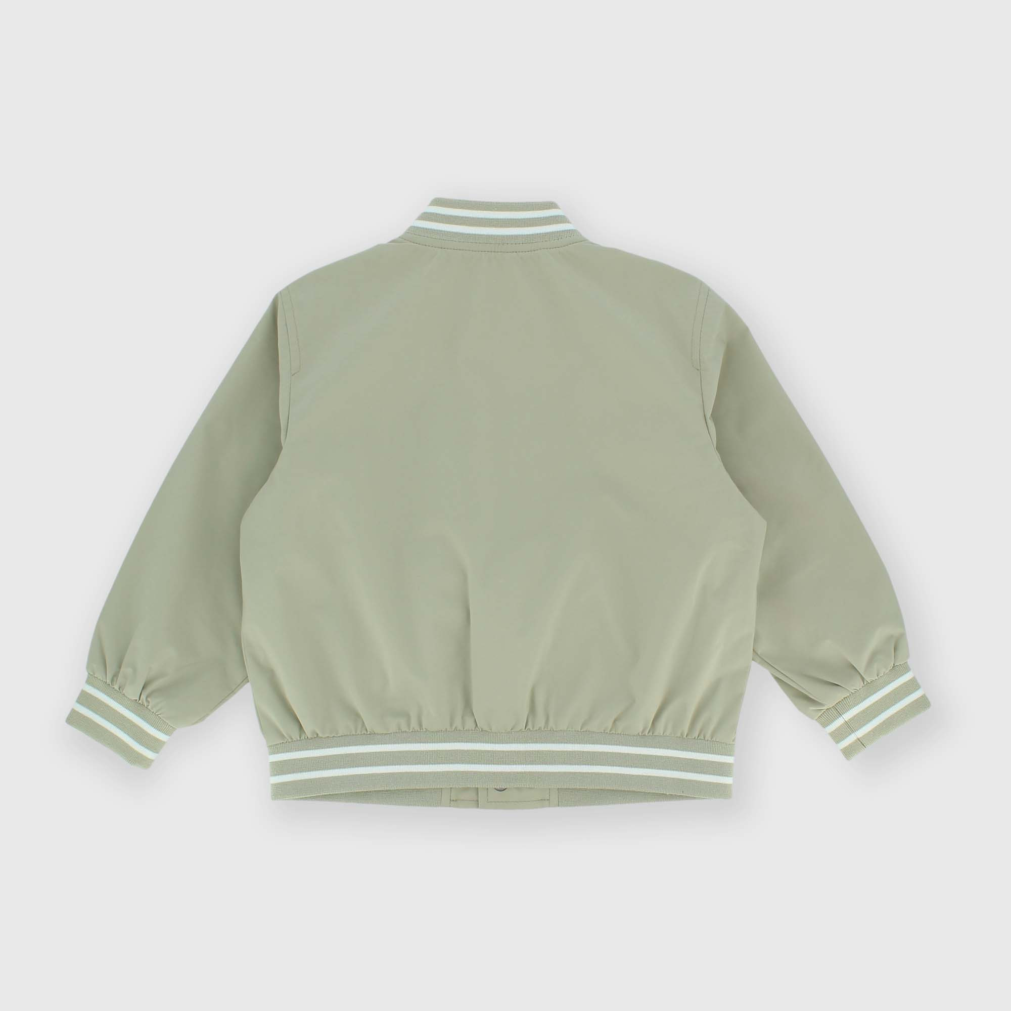 Cazadora modelo bomber de nylon, mangas largas. Cuello, puños y parte inferior canalé rayas. Cierre con botones automáticos en la parte anterior. Pecho estampado con efecto goma. Bolsillos ojal.