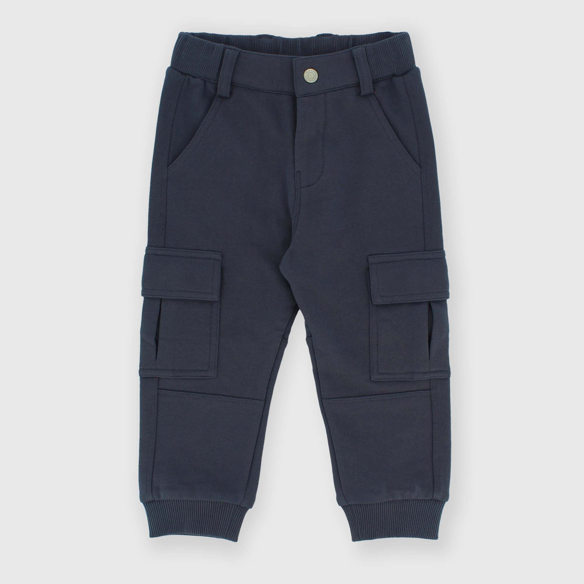 Pantalón de felpa con cintura elástica. Cierre con botón automático. Bolsillos franceses y grandes bolsillos laterales con solapa. Trabilla en la cintura y parte inferior canalé.