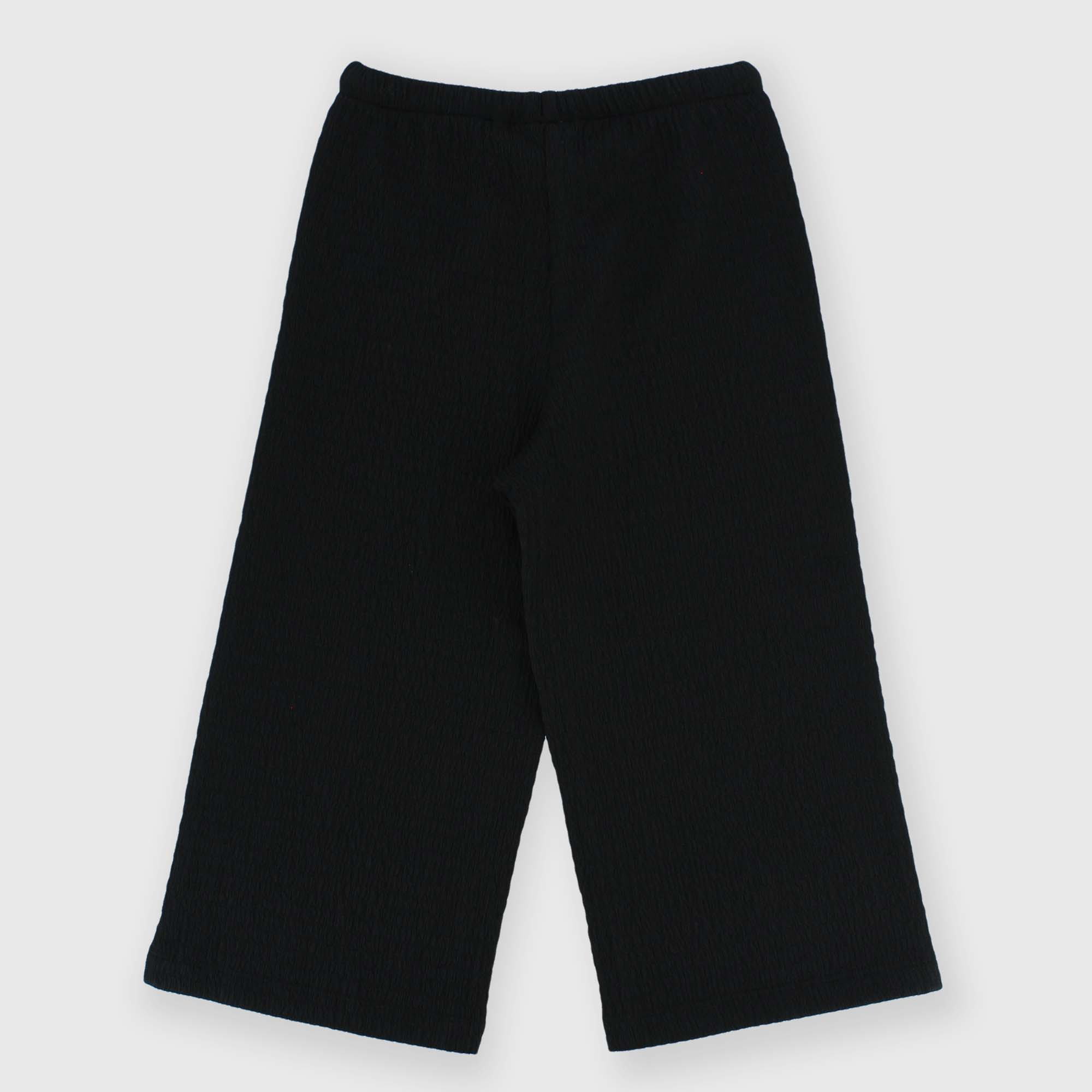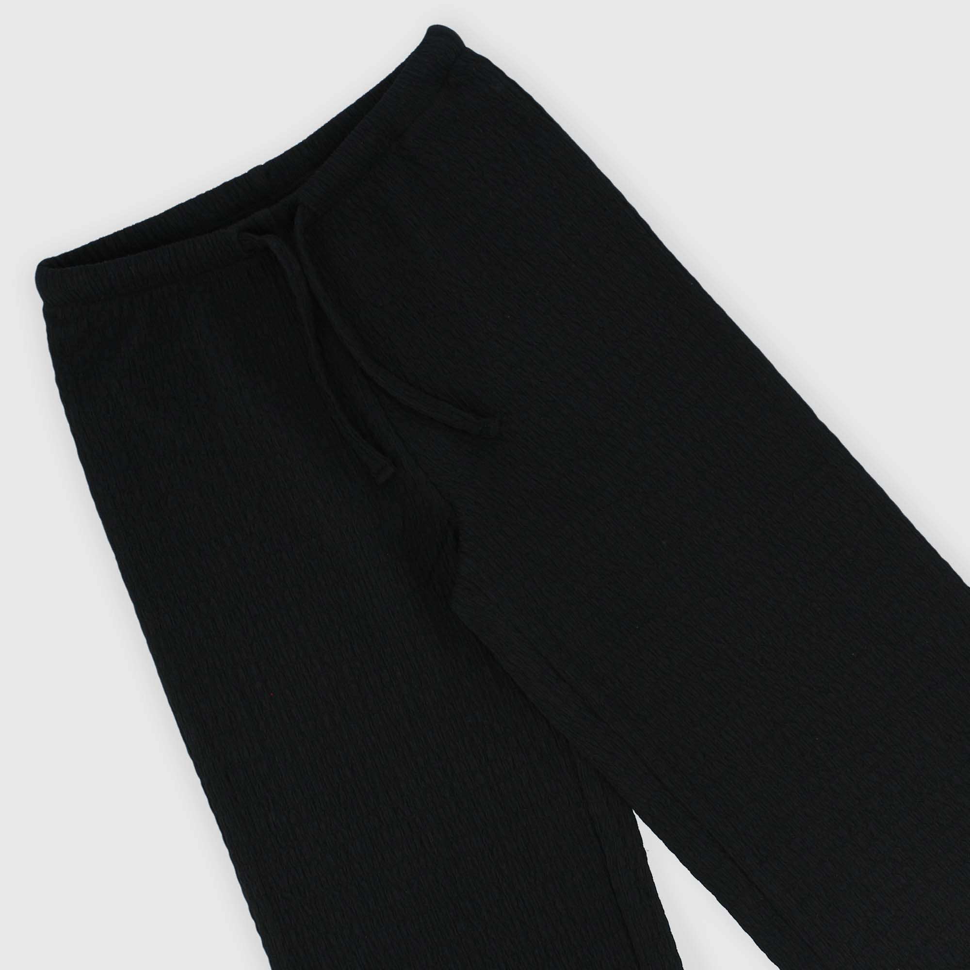 Pantalón de pierna ancha en tejido seersucker con cintura elástica y cordones delanteros.