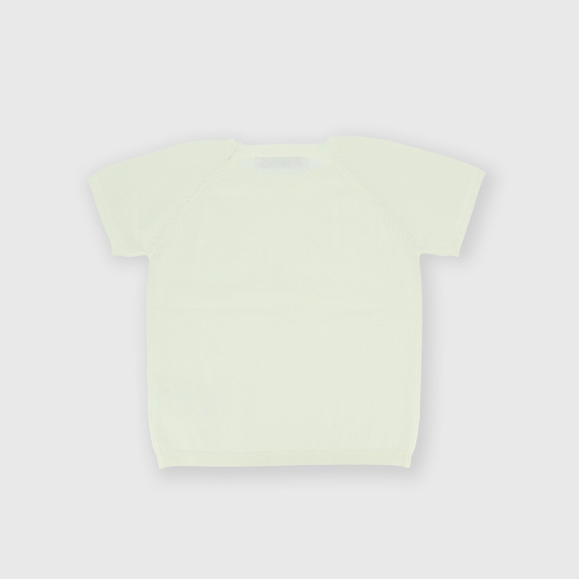 Camiseta tricot de algodón suave, cuello redondo, mangas cortas.