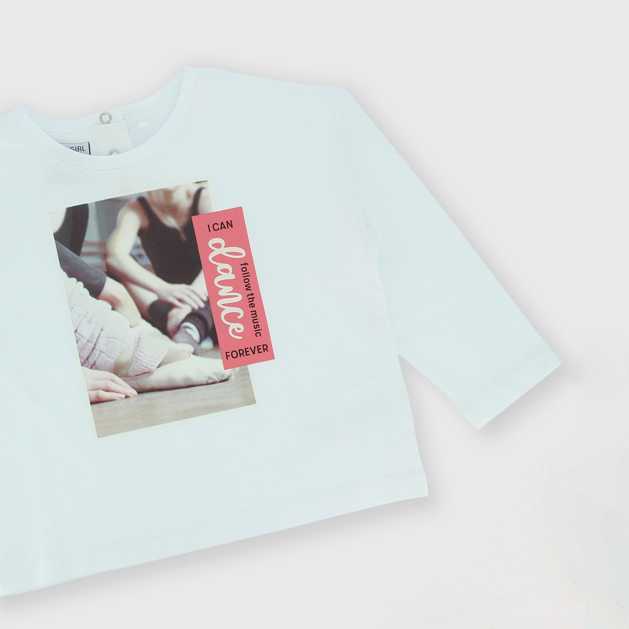 Camiseta de tejido Jersey, con cuello redondo, mangas largas. Cierre con botones automáticos en la parte trasera. Estampado fotográfico en la parte anterior.
