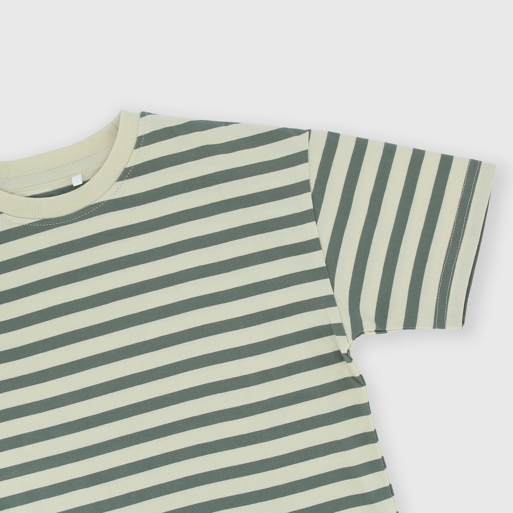 Camiseta de tejido Jersey raya de hilo tintado, con cuello redondo, mangas cortas.