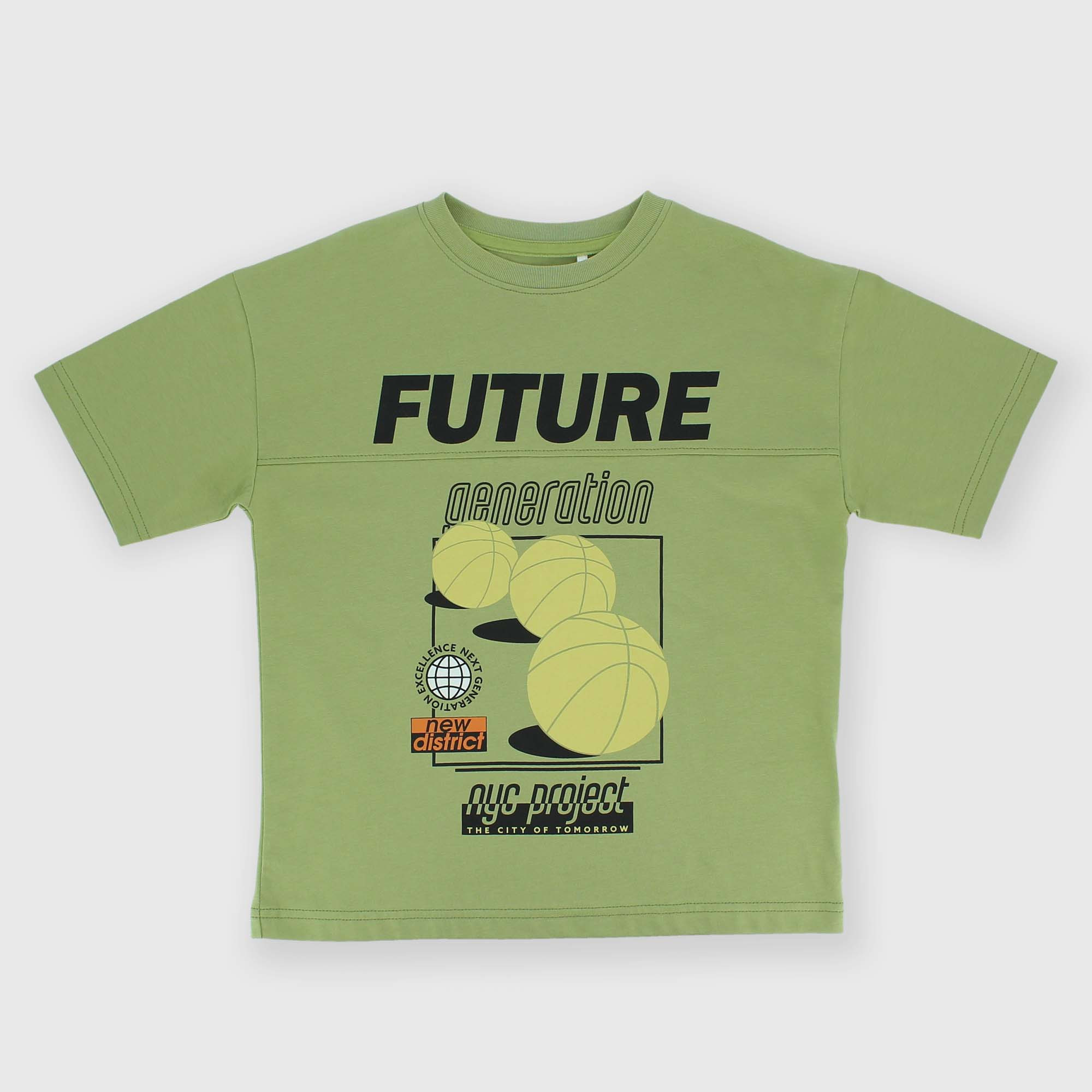 Camiseta de tejido Jersey, con cuello redondo, mangas cortas. Estampado con efecto goma en la parte delantera.