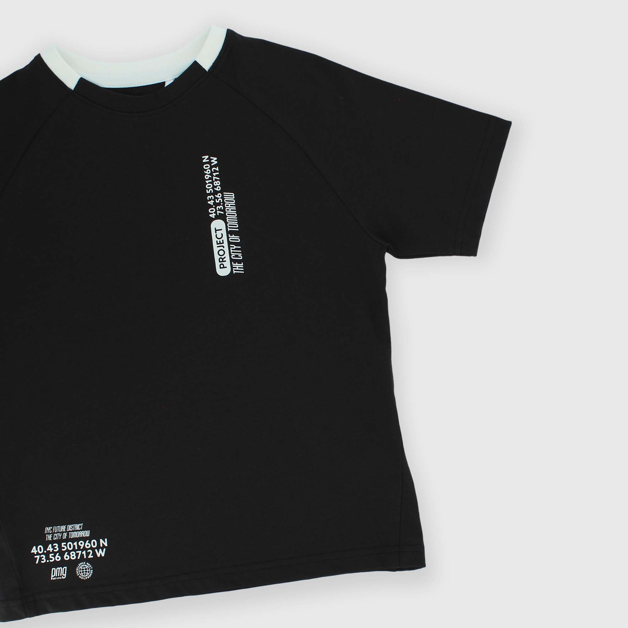 Camiseta de tejido Jersey, con cuello redondo, mangas cortas. Estampado cone scritas en la parte anterior y posterior. Cuello canalé en contraste.