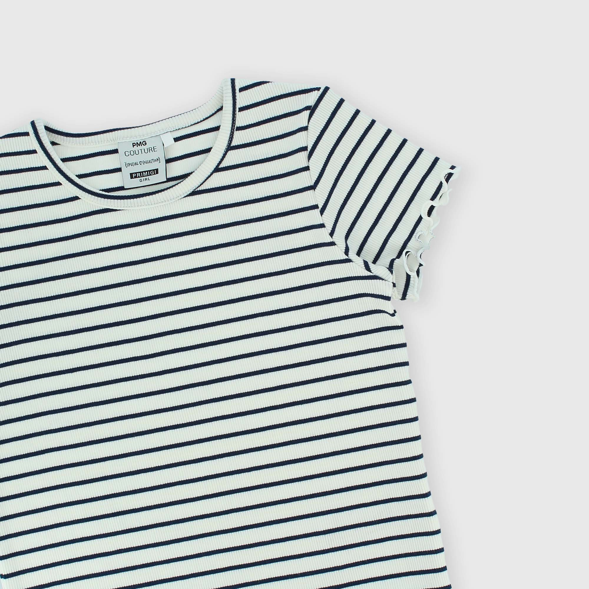 Camiseta de canalé hilo tintado, cuello redondo, mangas cortas. Acabados de punto bambola.