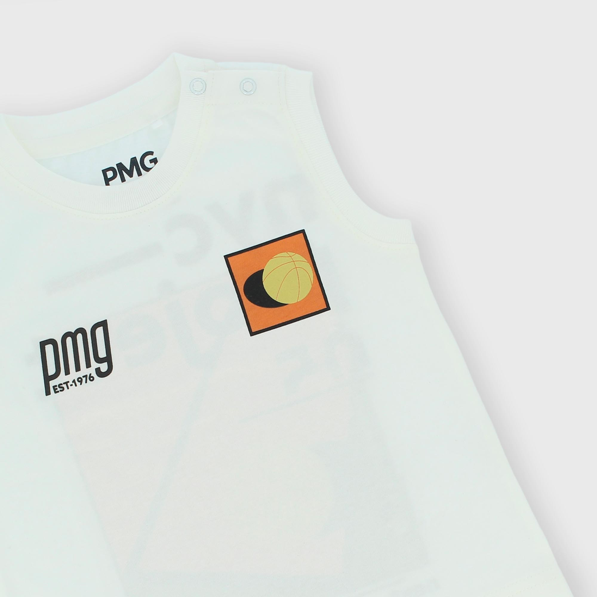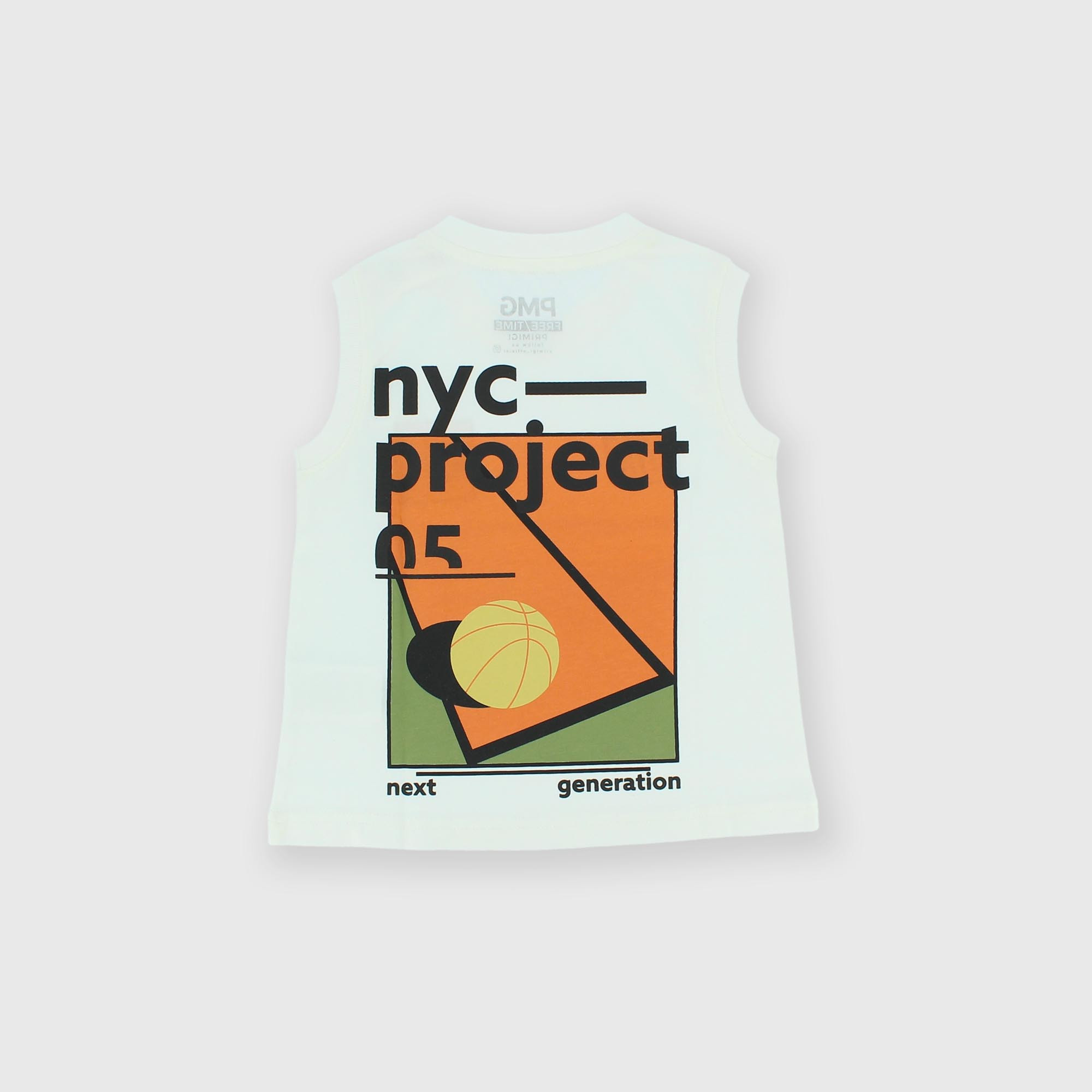 Camiseta de tirantes de tejido Jersey, cuello redondo. Parte delantera y trasera estampadas efecto goma.