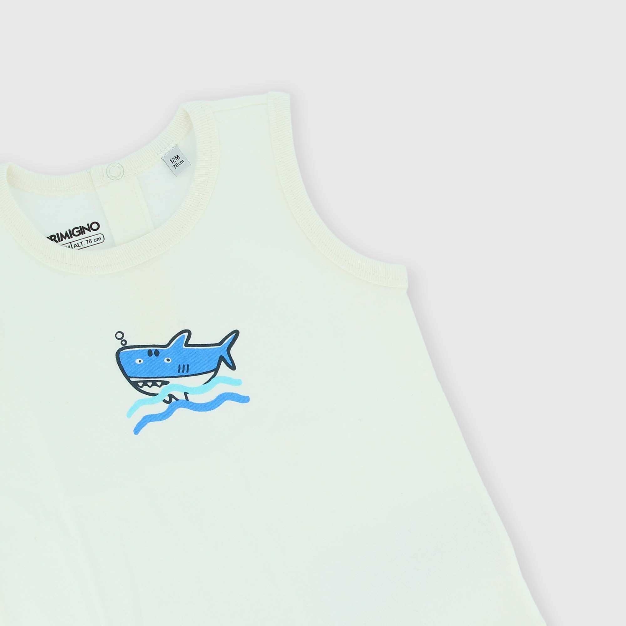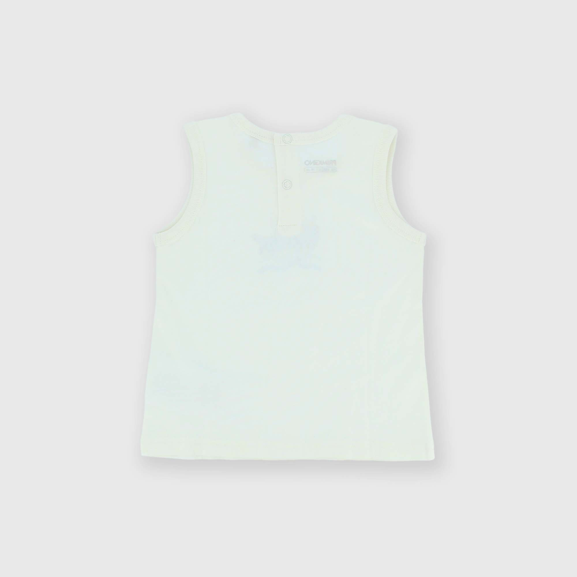 Camiseta de tirantes de tejido Jersey. Cierre con botones automáticos en la parte posterior. Pequeño motivo estampado en la parte delantera.