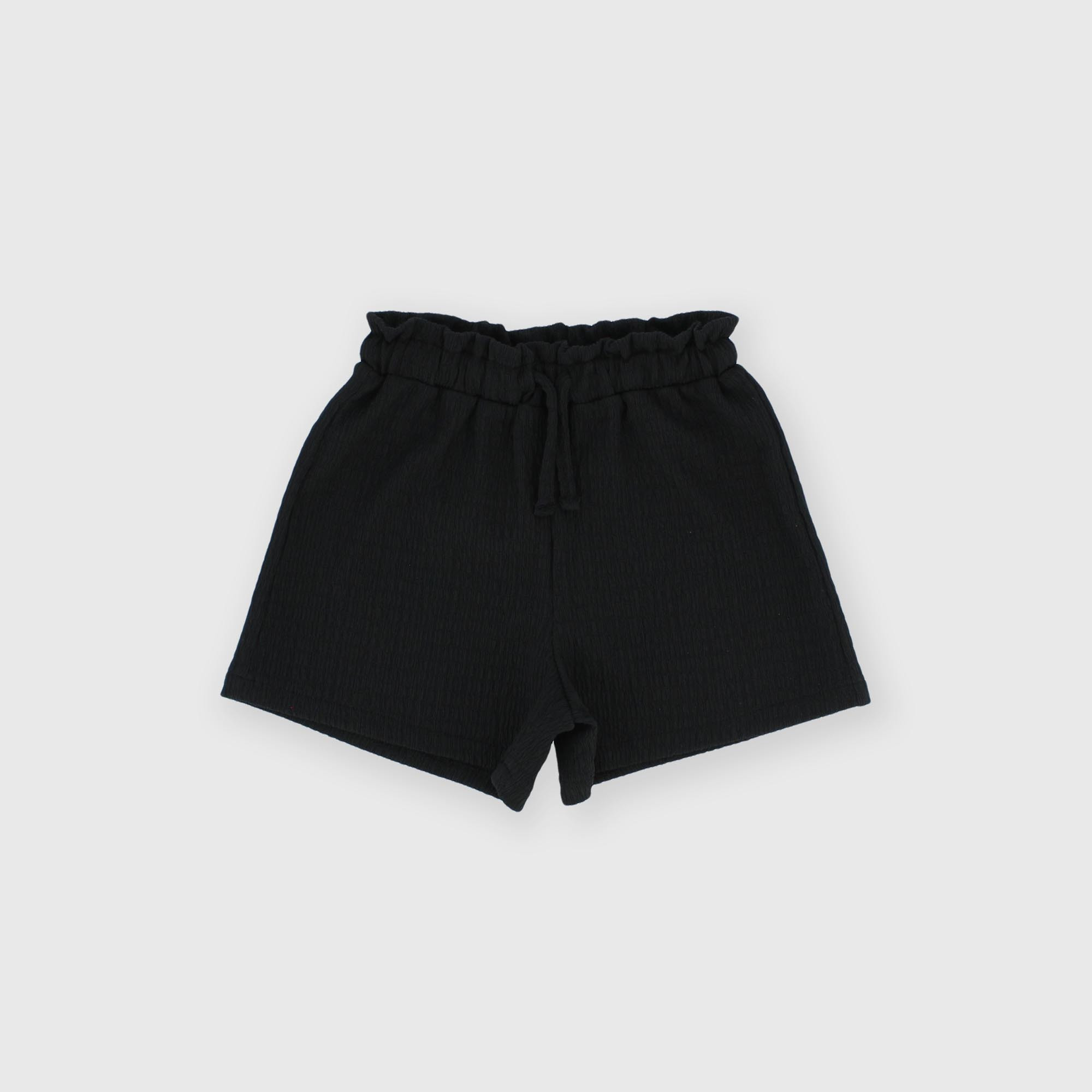Pantalón corto de tejido seersucker para niña, negro
