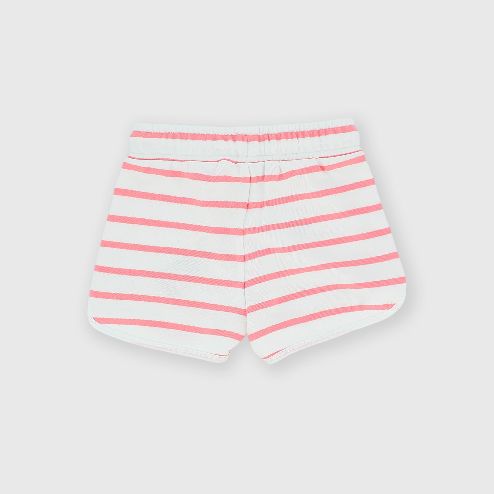 Pantalones cortos de felpa con cintura elástica y cordones delanteros. Rayas estampadas all over.