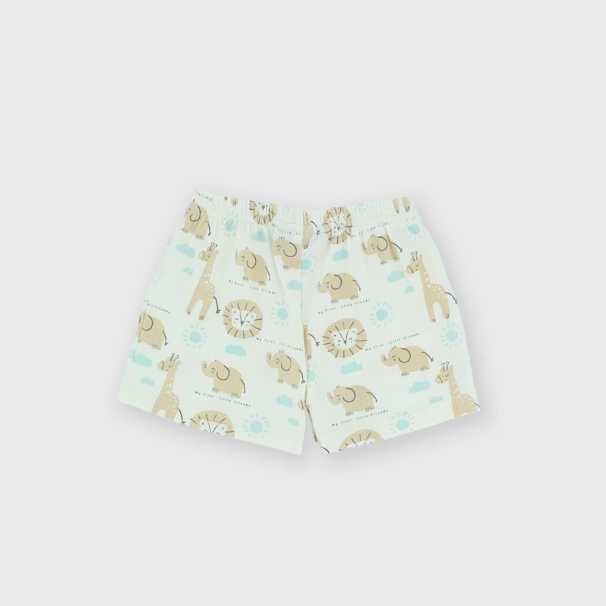 Pantalón corto canalé con cintura elástica. Animales estampados all over.