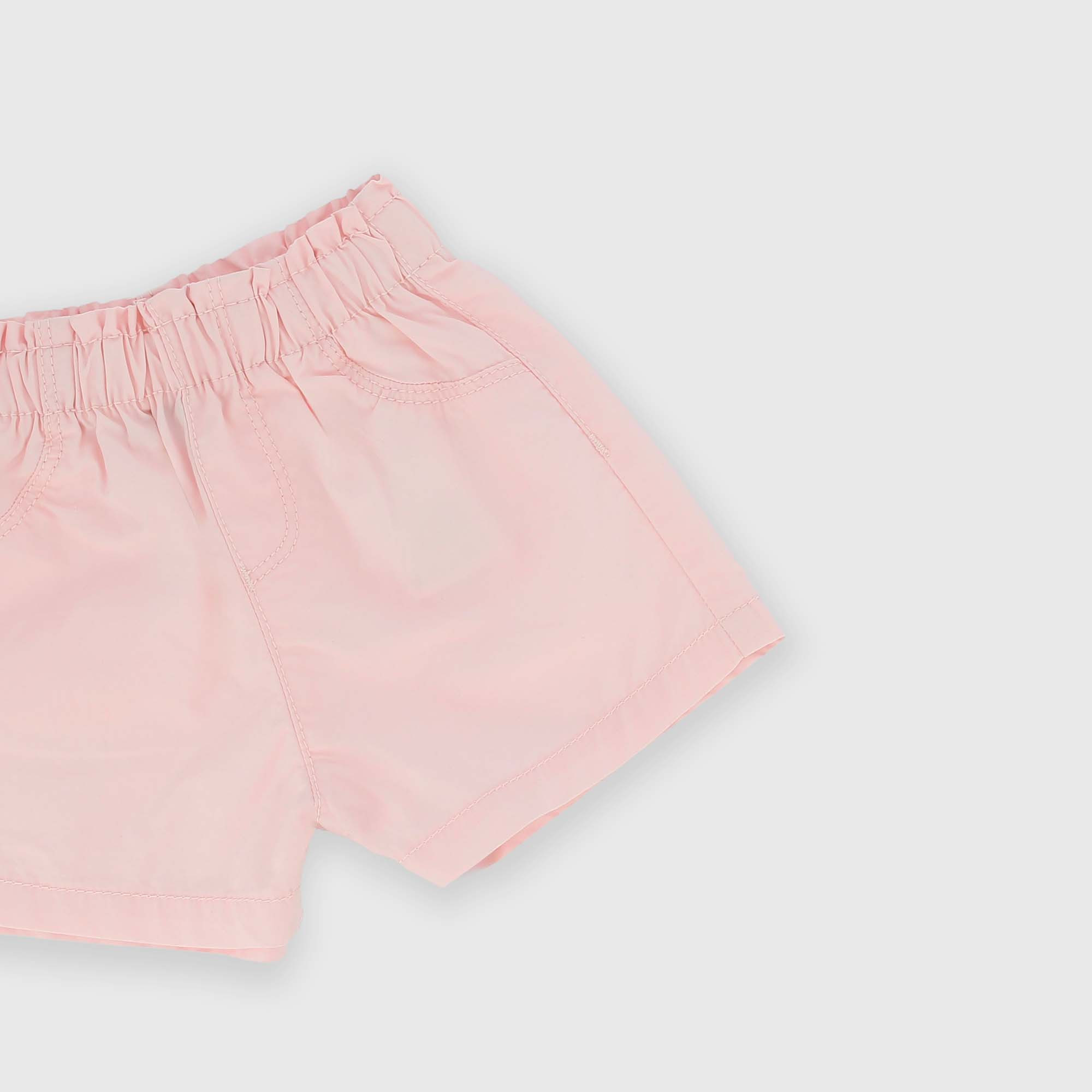 Pantalones cortos de popelina con cintura elástica. Cierre con botón automático. Bolsillos de parche en la parte trasera.