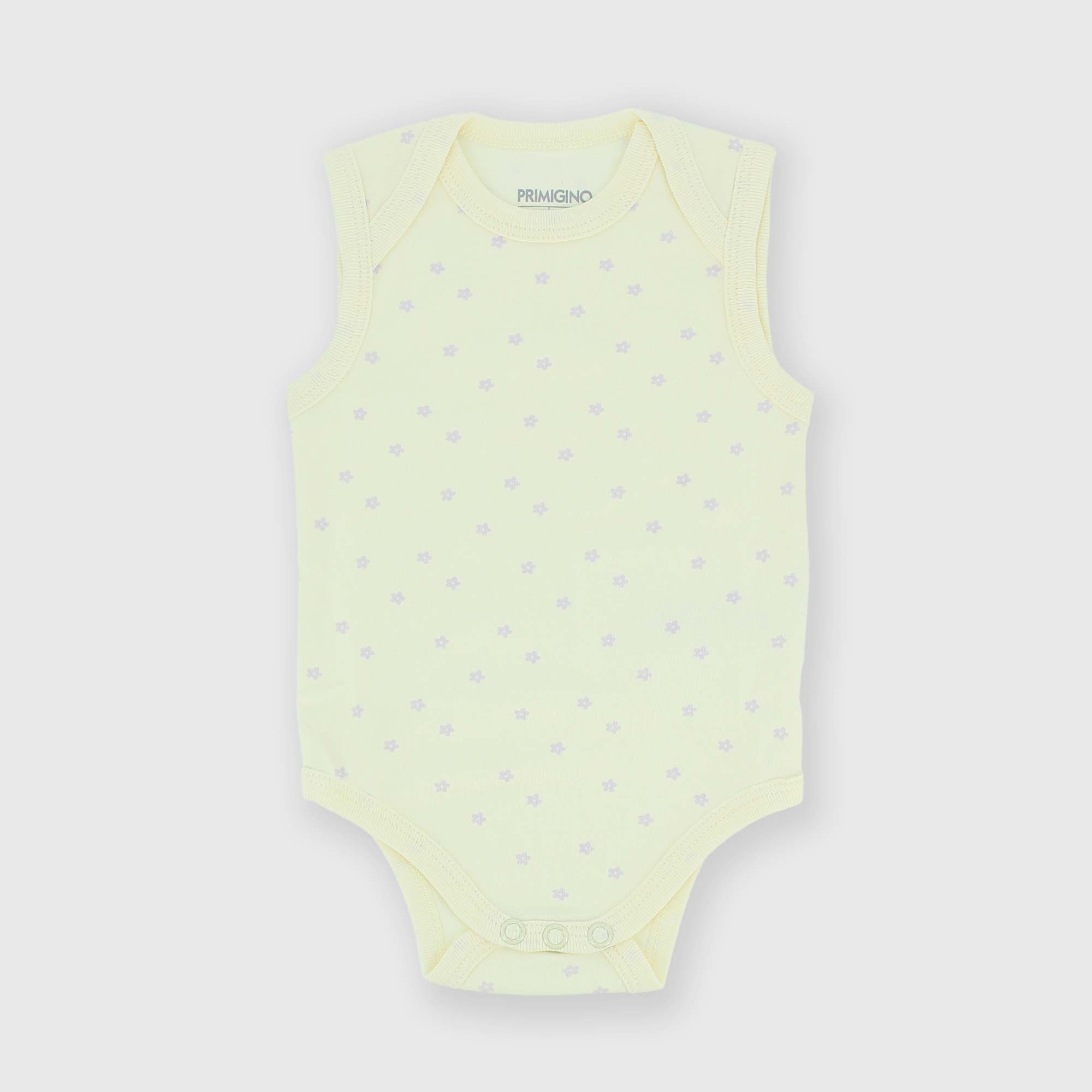 Body de tejido Interlock, cuello redondo, sin mangas. Cierre con botones automáticos en la parte inferior. Flores estampadas all over.