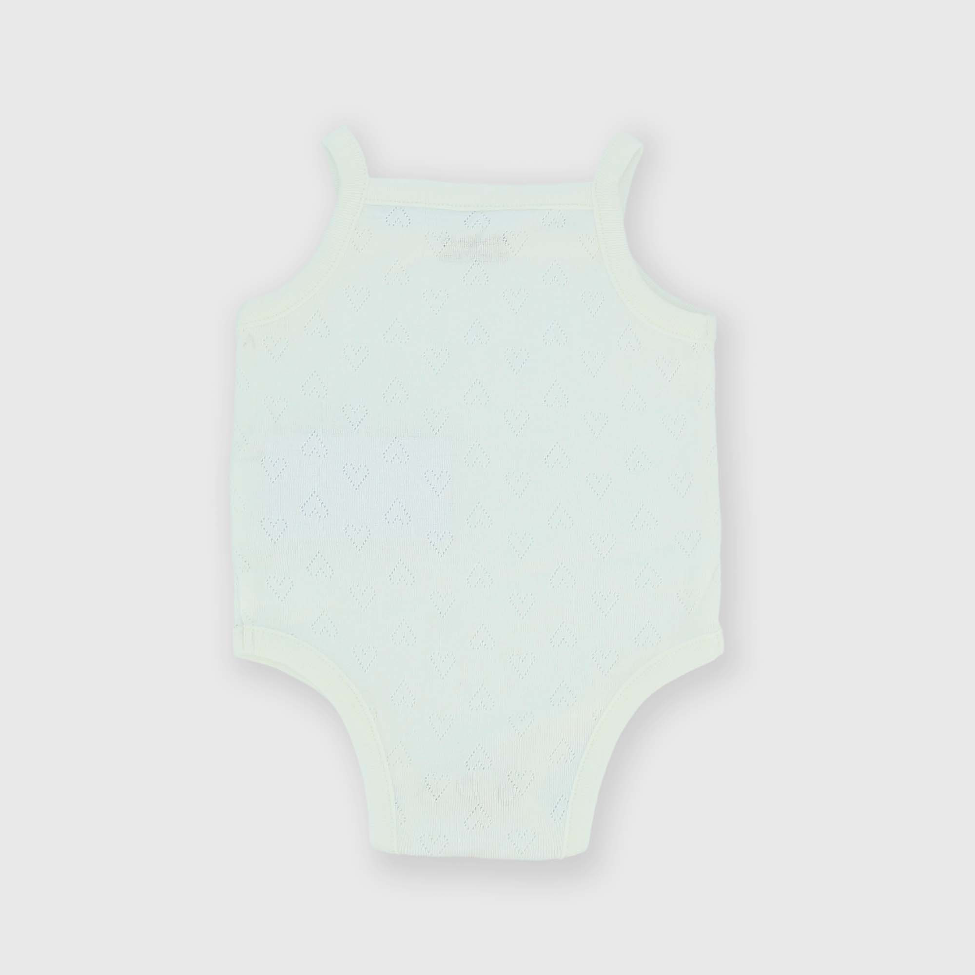 Body pana cuello cuadrado, con tirantes. Cierre con botones automáticos en la parte inferior. Lazo aplicado en la parte delantera.