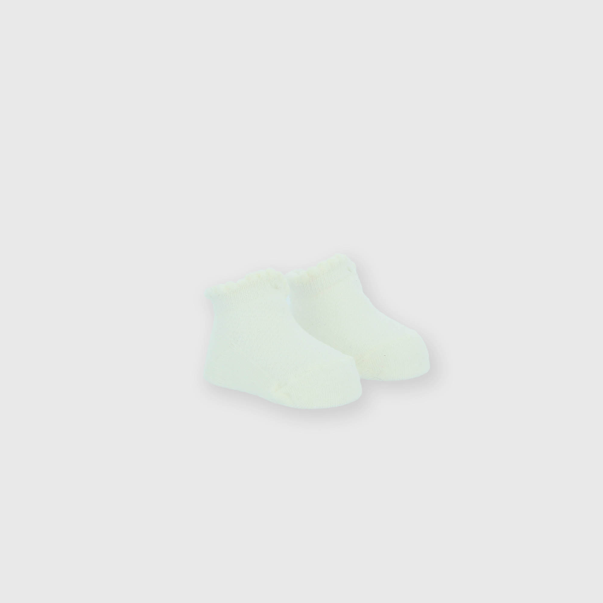 Calcetines cortos de bebé niña un solo color con borde elaborado.
