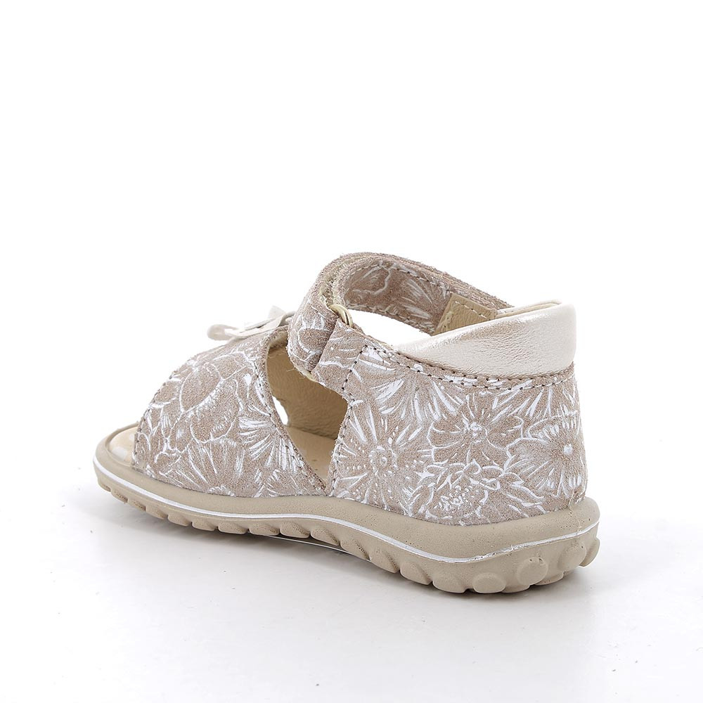 Sandalias de piel de primeros pasos con adorno de flor. Femeninas y funcionales, se pueden abrir totalmente y son prácticas de calzar. El talán está cerrado para dar el máximo soporte a pie y los acolchados del tobillo favorecen delicadamente un correcto ajuste. Tanto el forro como la plantilla está realizados con piel sin cromo para crear un ambiente saludable e higiénico. La ligereza de la suela las hace perfectas para acompañar los movimientos sin constricciones.