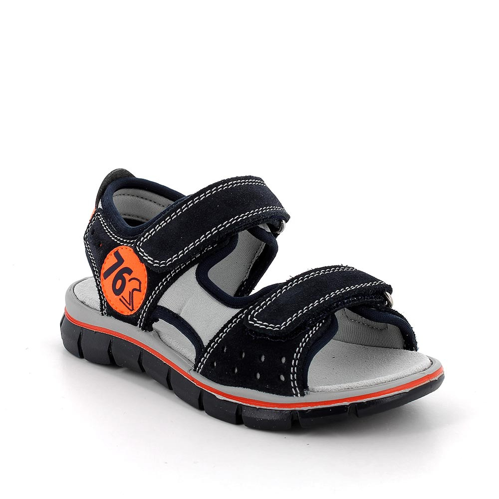 Sandalias de chico en ante y tejido. La particular construcción de este modelo con bordes elásticos lo hace decididamente agradable de llevar y elimina cualquier molesto roce. Los detalles coloridos hacen que estos zapatos sean llamativos y perfectos para dar brillo a los estilismos de verano. La plantilla de ante da una sujeción especialmente acogedora. El particular diseño de la suela favorece el balanceo del pie, garantizando una adecuada flexión.