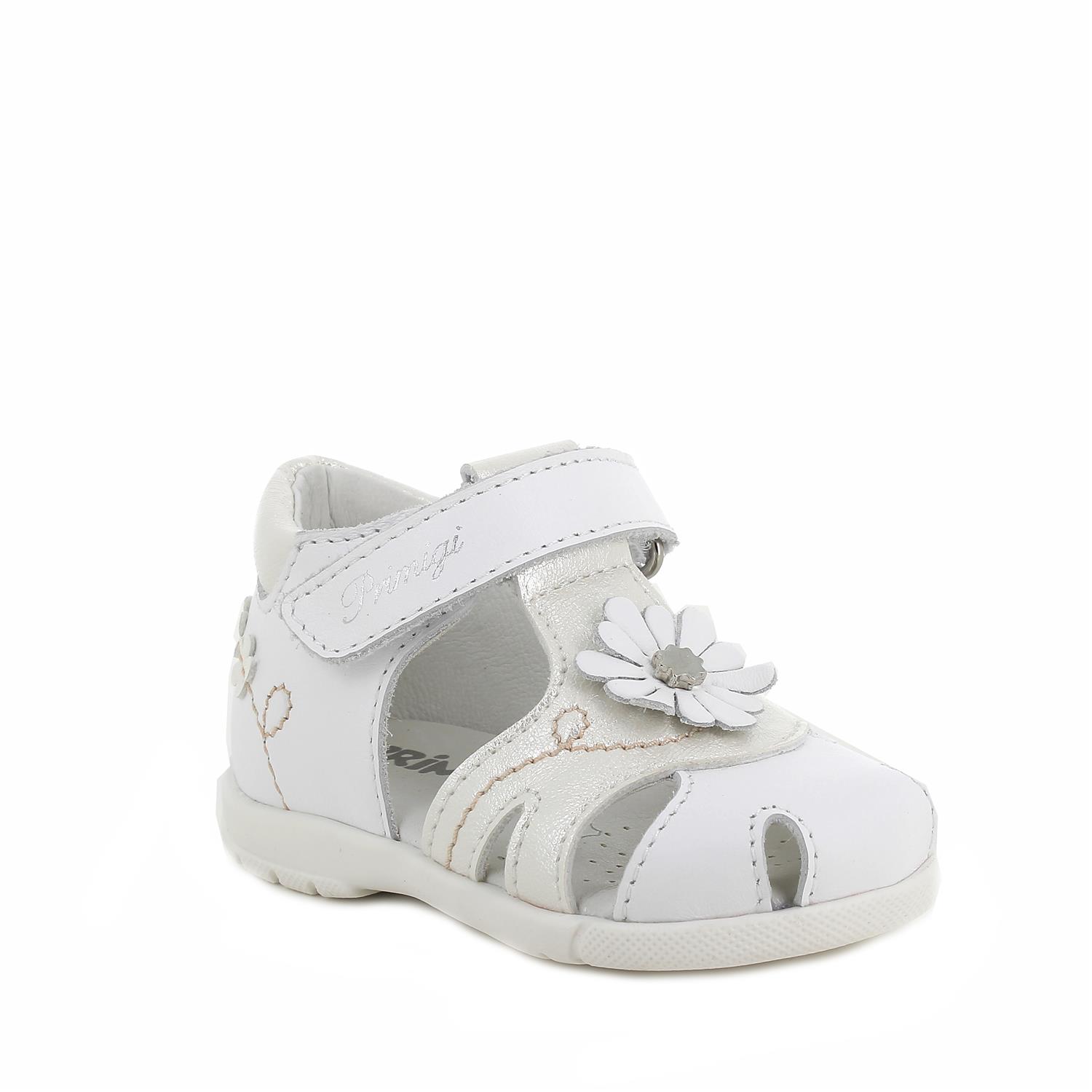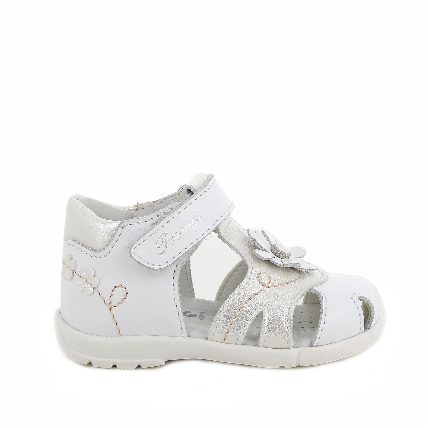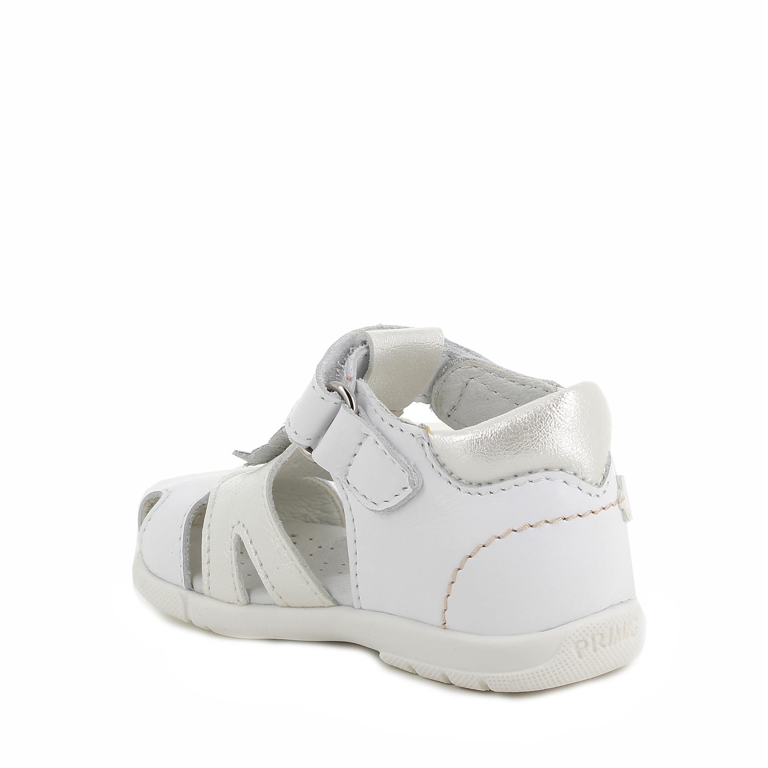 Sandalias primeros pasos de niña con puntera cerrada. La calidad de los materiales y la construcción aseguran un ambiente sano y un correcto apoyo en esta delicada fase de crecimiento. El diseño es refinado y fresco. La plantilla en cuero libre de cromo ofrece un soporte delicado y la suela con punta redondeada deja espacio para que los dedos se muevan.