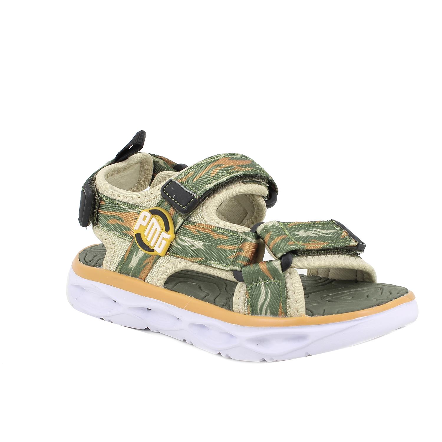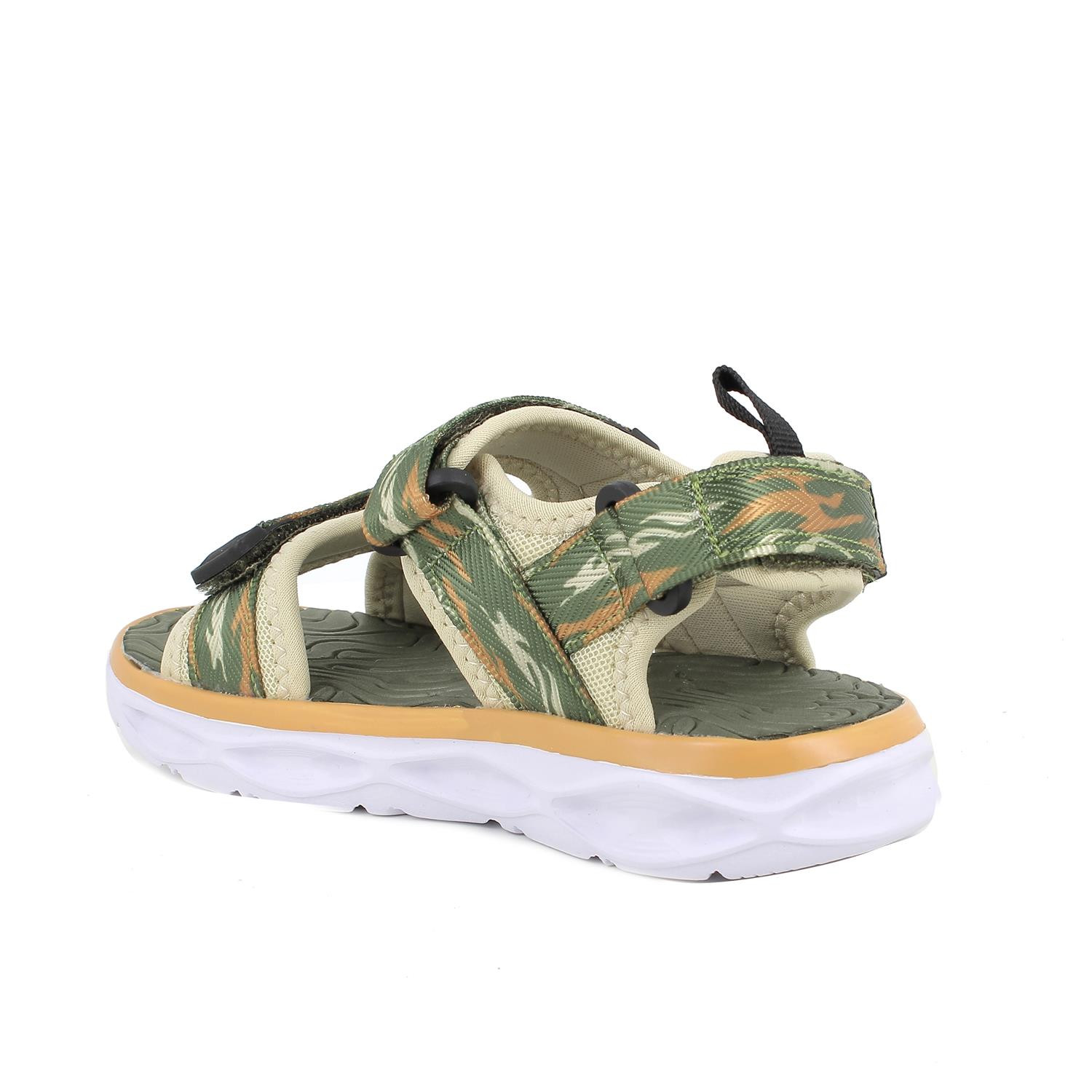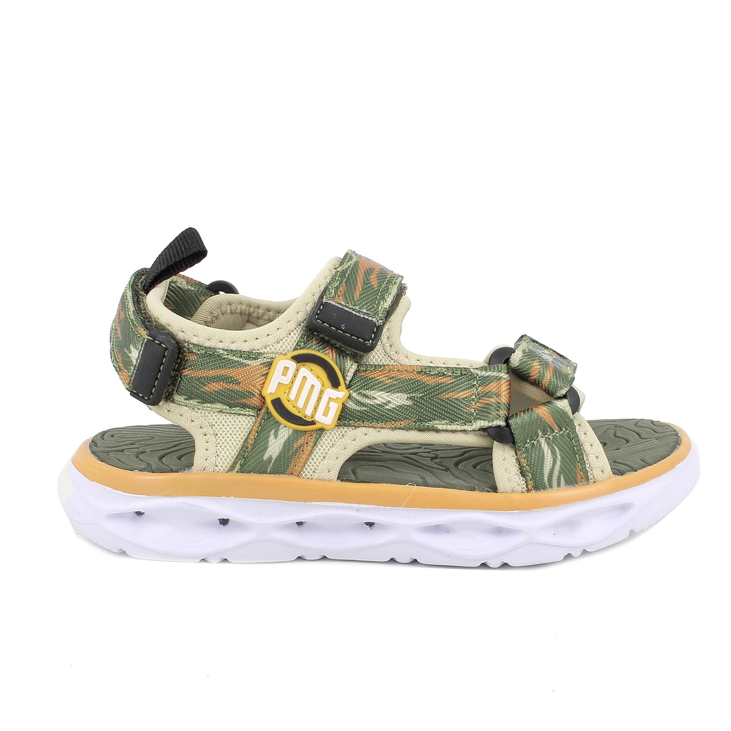 Sandalias realizadas con material técnico y bandas de gros-grain. Tienen incluso un ajuste trasero con velcros. La plantilla de EVA tienen ranuras que favorecen la transpiración. La suela está equipada con luces, para iluminar cada paso.