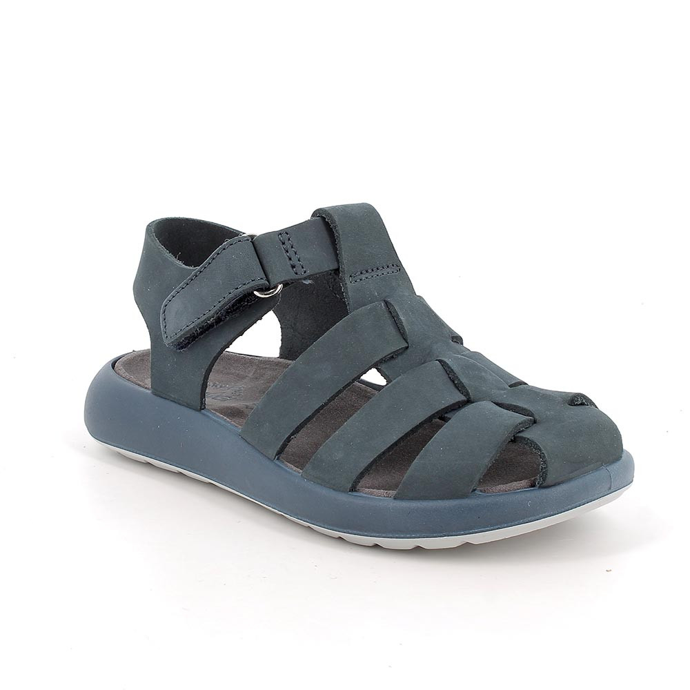 La parte superior de estas sandalias está confeccionada con varias cintas que se entrelazan en la parte delantera, cubriendo el pie mientras mantienen una ventilación adecuada. La puntera está cerrada para una mayor protección de los dedos, lo que las hace ideales para actividades al aire libre. La suela es gruesa y ligeramente elevada, con una estructura flexible y una base antideslizante. La plantilla de ante proporciona una sensación suave al tacto y un confort superior. Estas sandalias son perfectas para niños que necesitan un calzado resistente y cómodo, adecuado para un look casual y para exploraciones al aire libre.