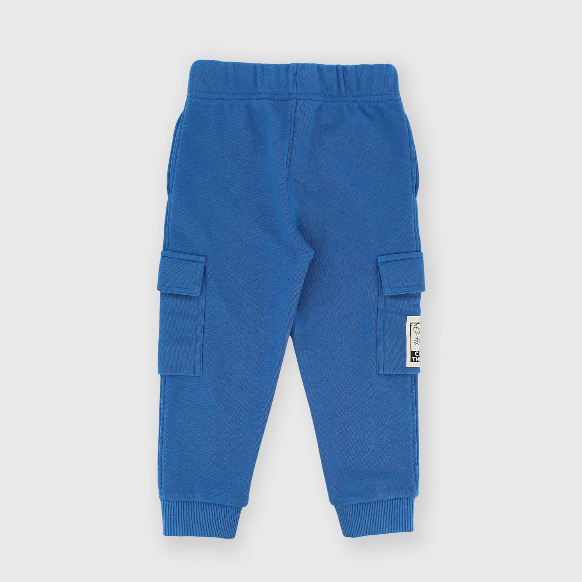 Pantalón de felpa con cintura elástica y cordones delanteros. Bolsillos de parche con solapa en los laterales. Estampado efecto gomado en el bolsillo. Bajo en canalé.