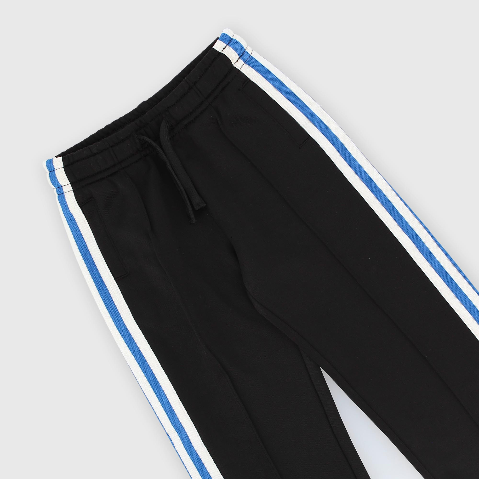Pantalón de triacetato con cintura elástica y cordones delanteros. Bolsillos traseros de ojal. Bandas laterales en contraste.