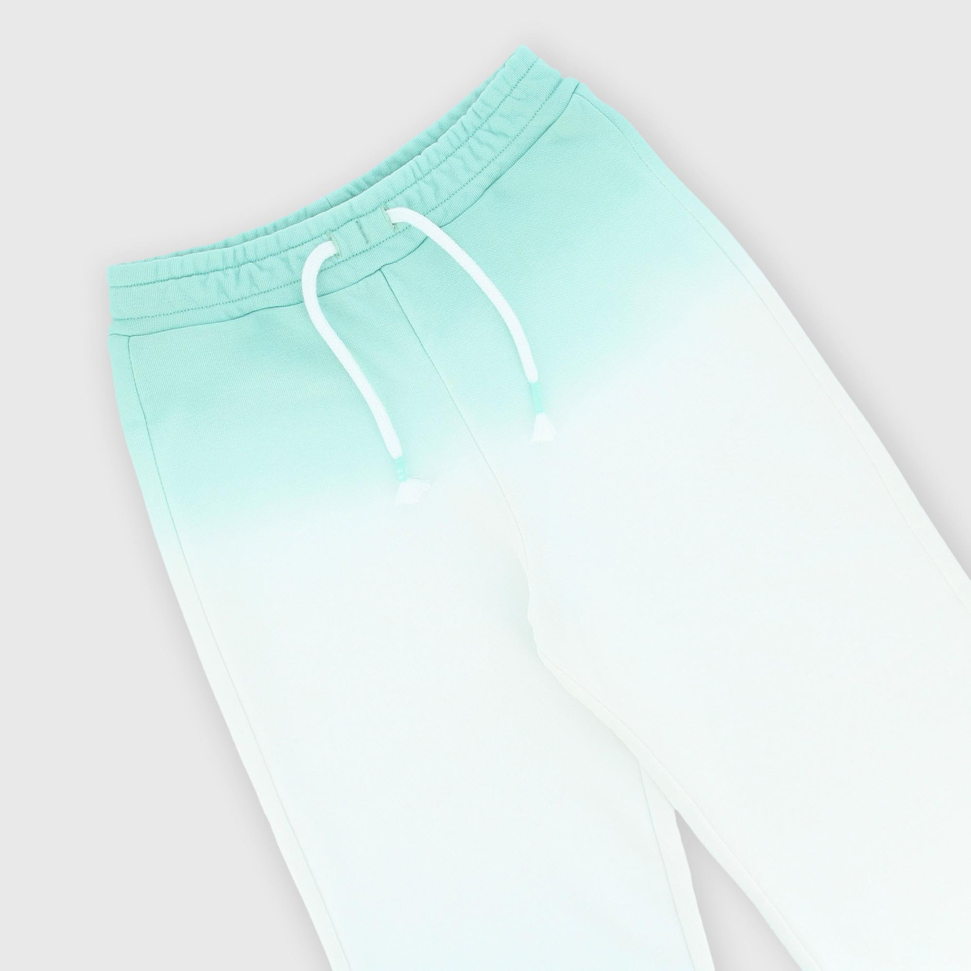 Pantalón de pierna anche de felpa degradada con cintura elástica y cordones delanteros.
