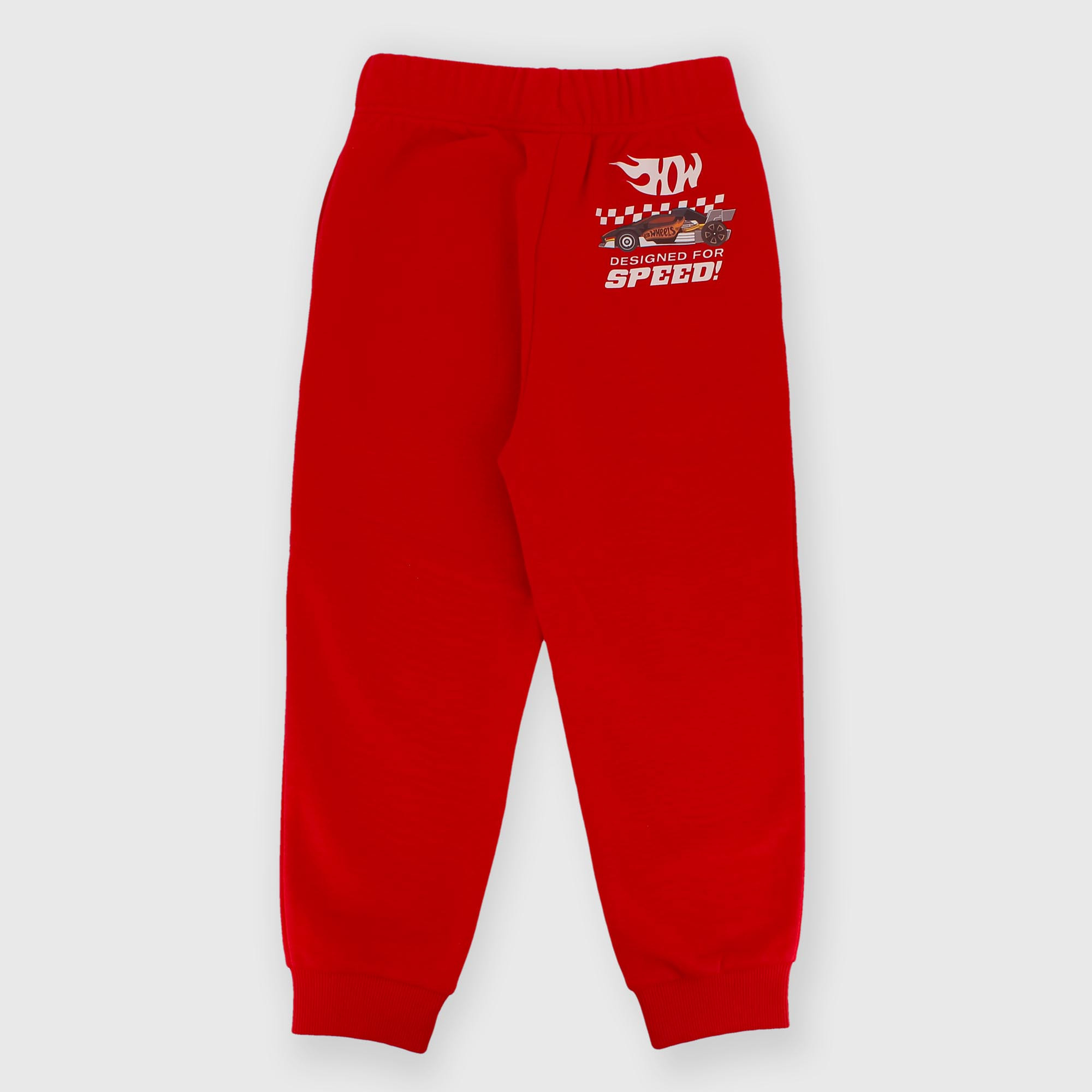 Pantalón Hot Wheels™ de felpa con cintura elástica y cordones frontales a contraste. Bolsillos laterales ocultos. Estampados en la parte delantera y trasera. Bajo de canalé. ®2026 Mattel.