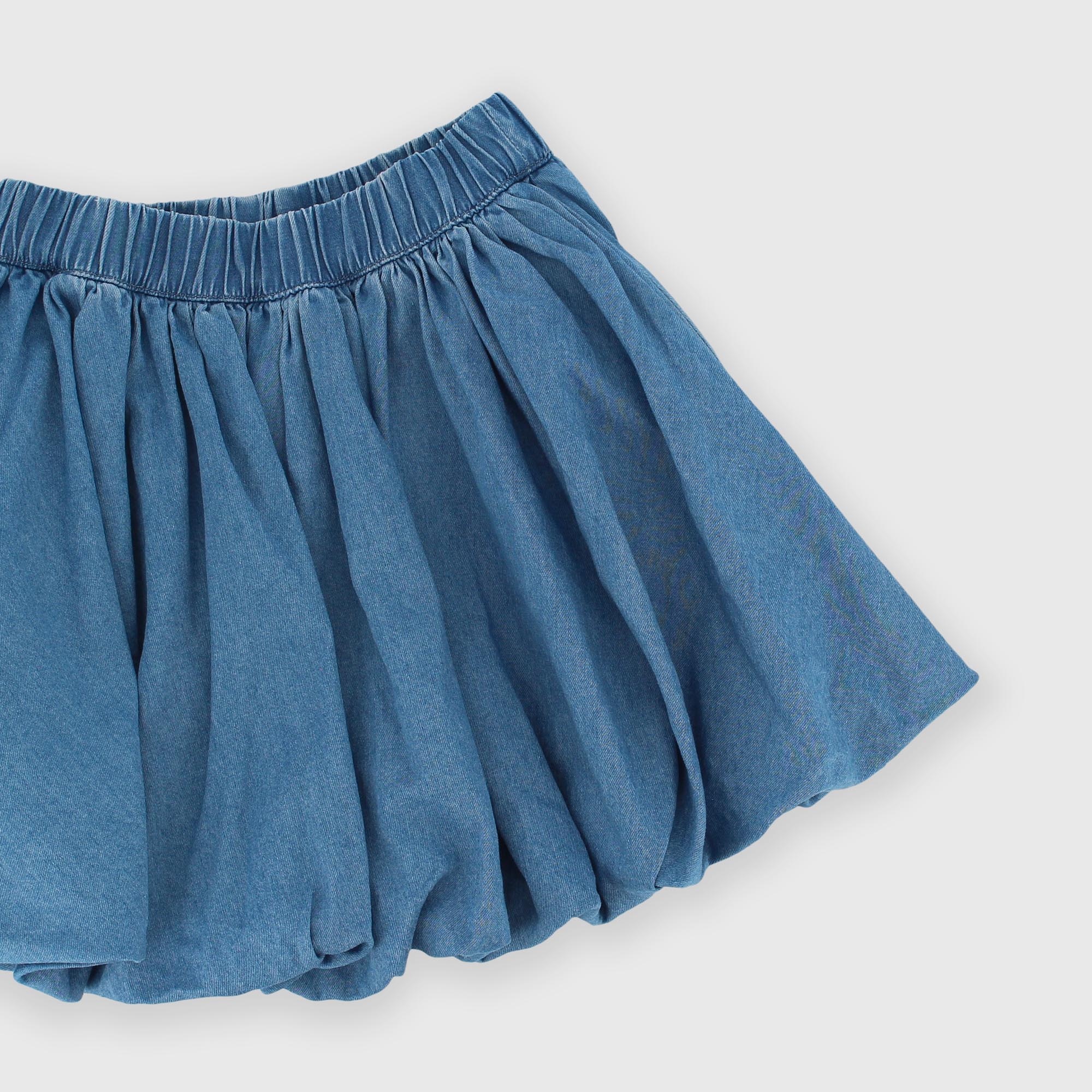 Falda vaquera de tejido ligero, estilo globo. Cintura elástica.
