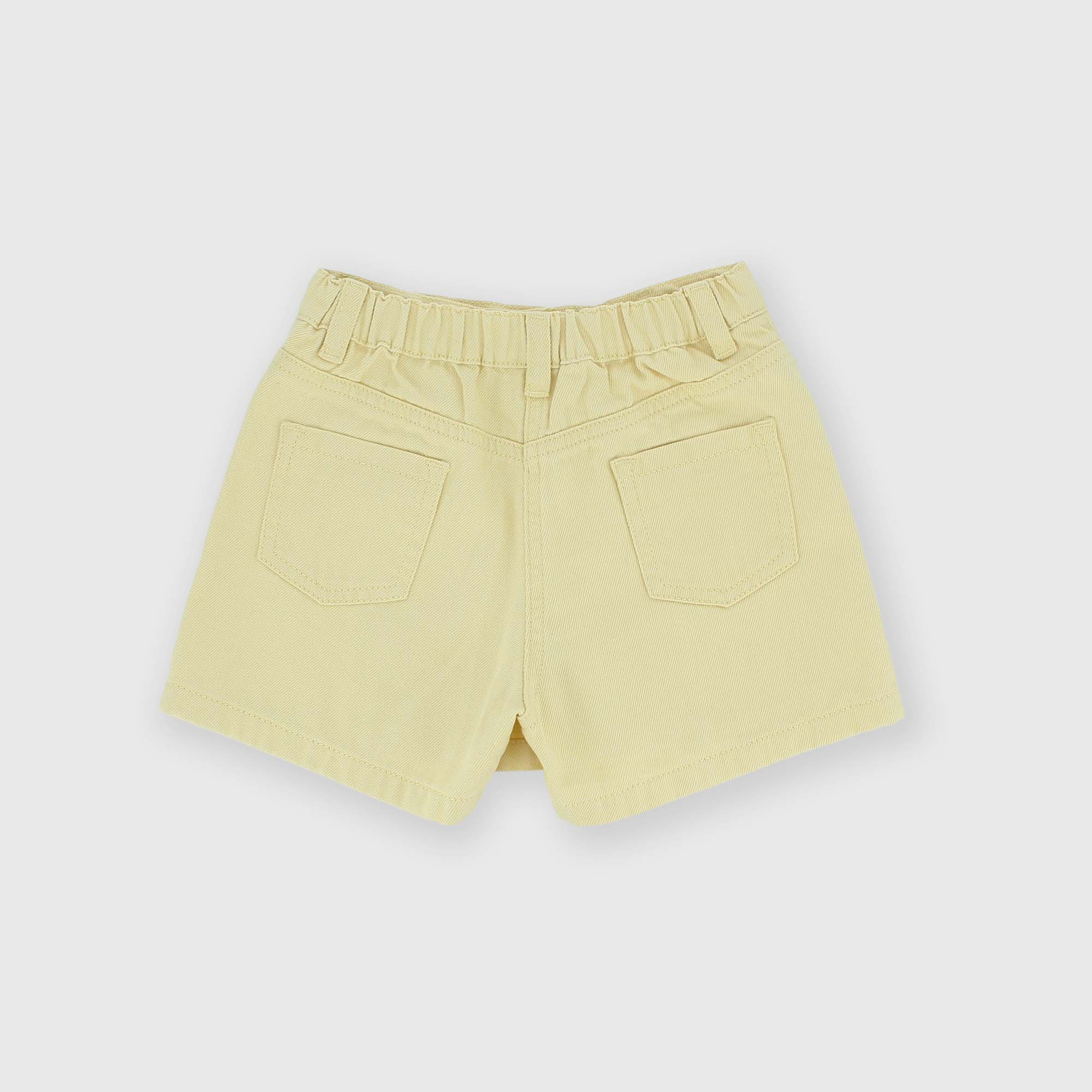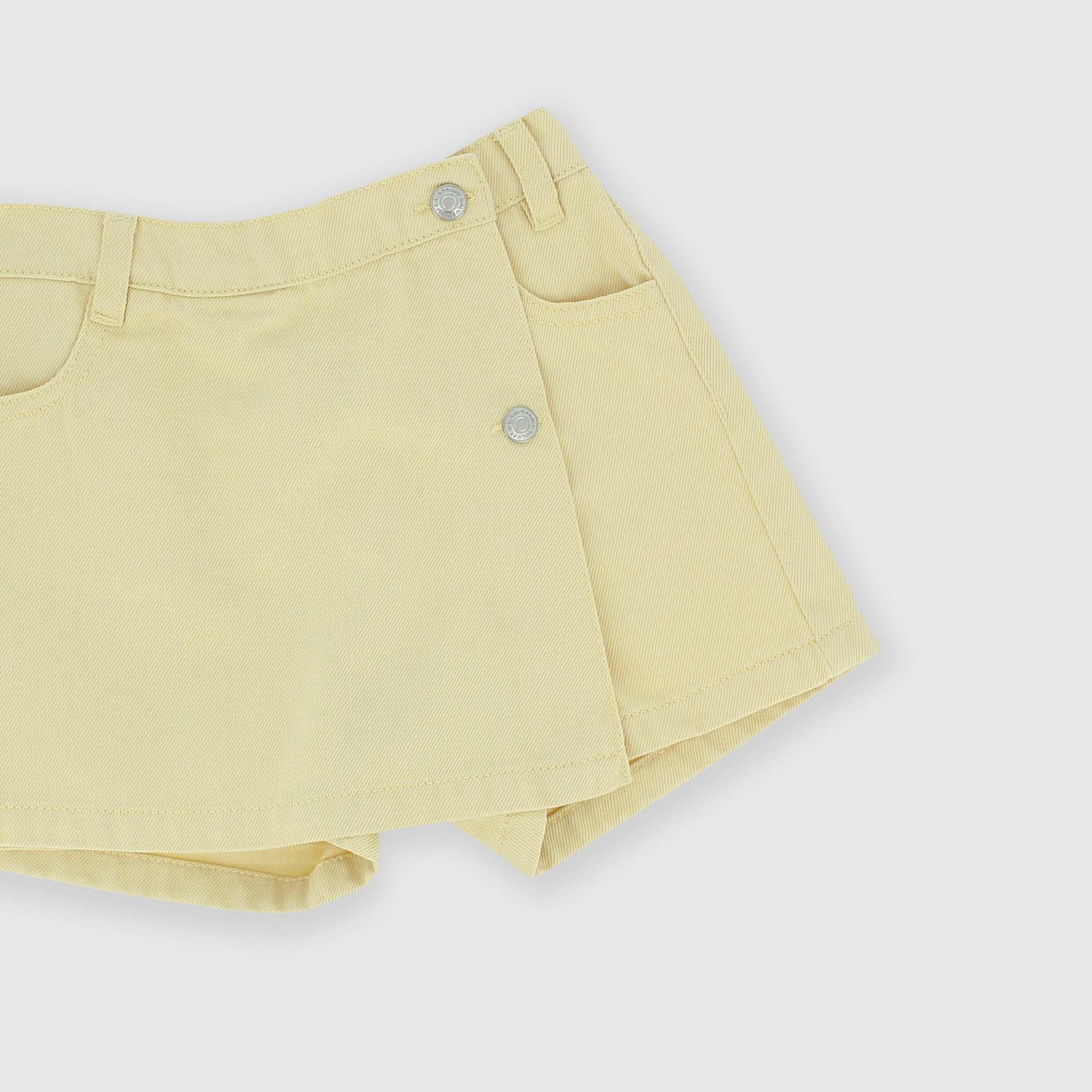 Falda pantalón de tela de algodón con cintura elástica en la parte posterior. Botones anteriores. bolsillos de parche en la parte posterior.