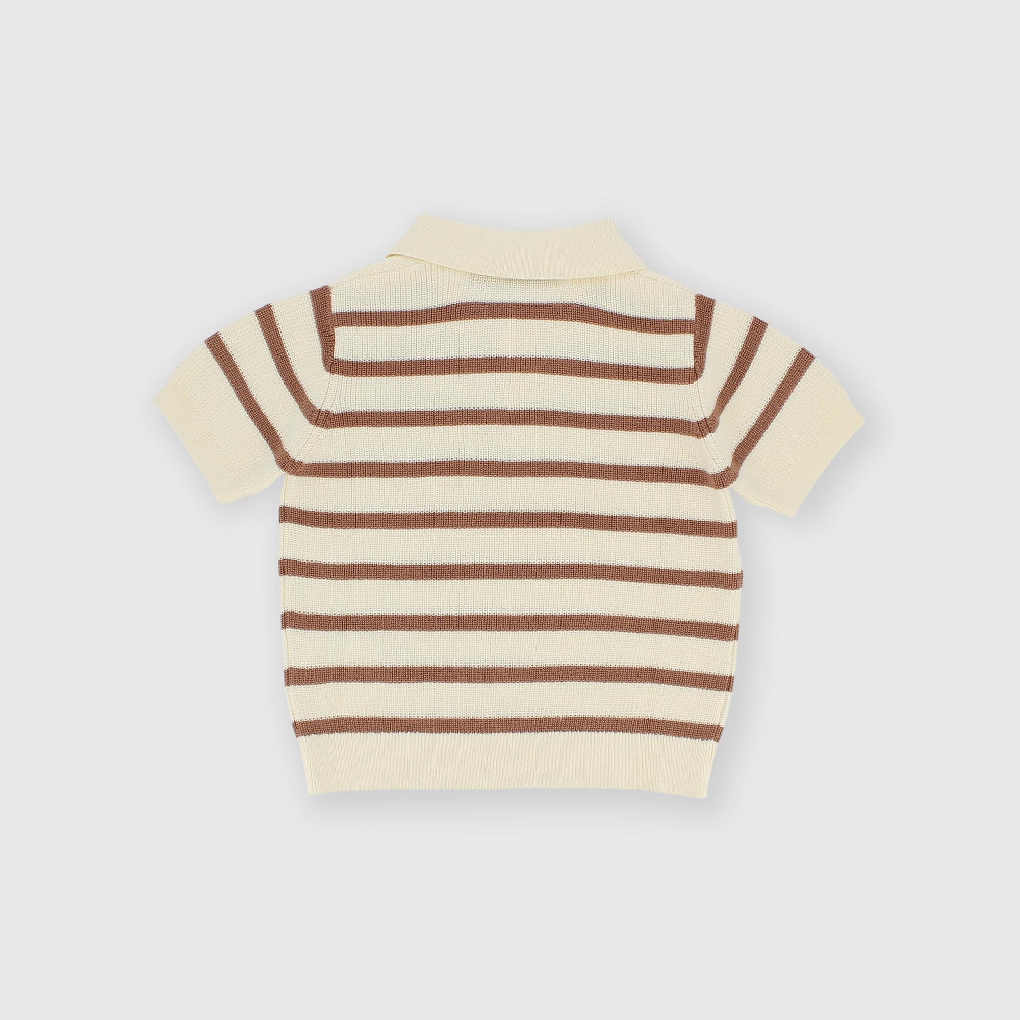 Polo de punto tricot en suave algodón, de manga corta. Cierre frontal con botones. Bolsillo en el pecho.