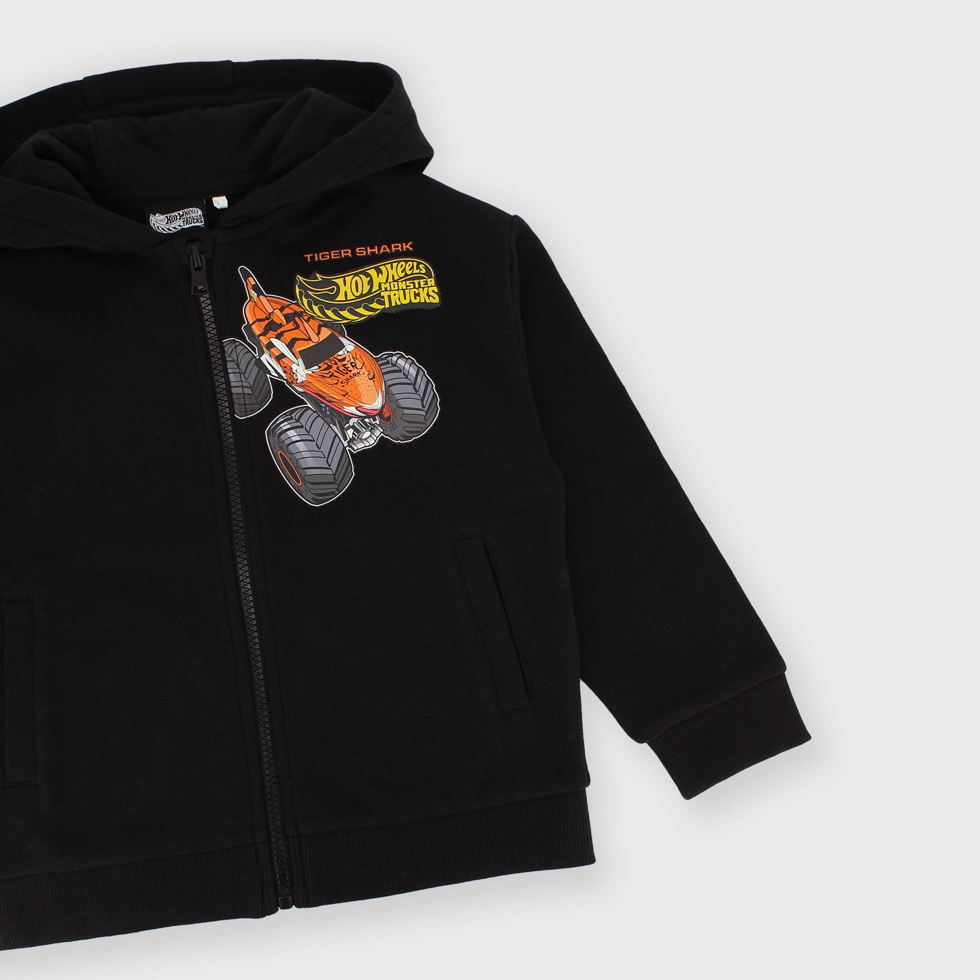 Sudadera Hot Wheels™ Monster Trucks con capucha y mangas largas. Puños y bajo de canalé. Cierre con cremallera. Bolsillos de ojal. Estampados en el frente y en la espalda. ®2026 Mattel.