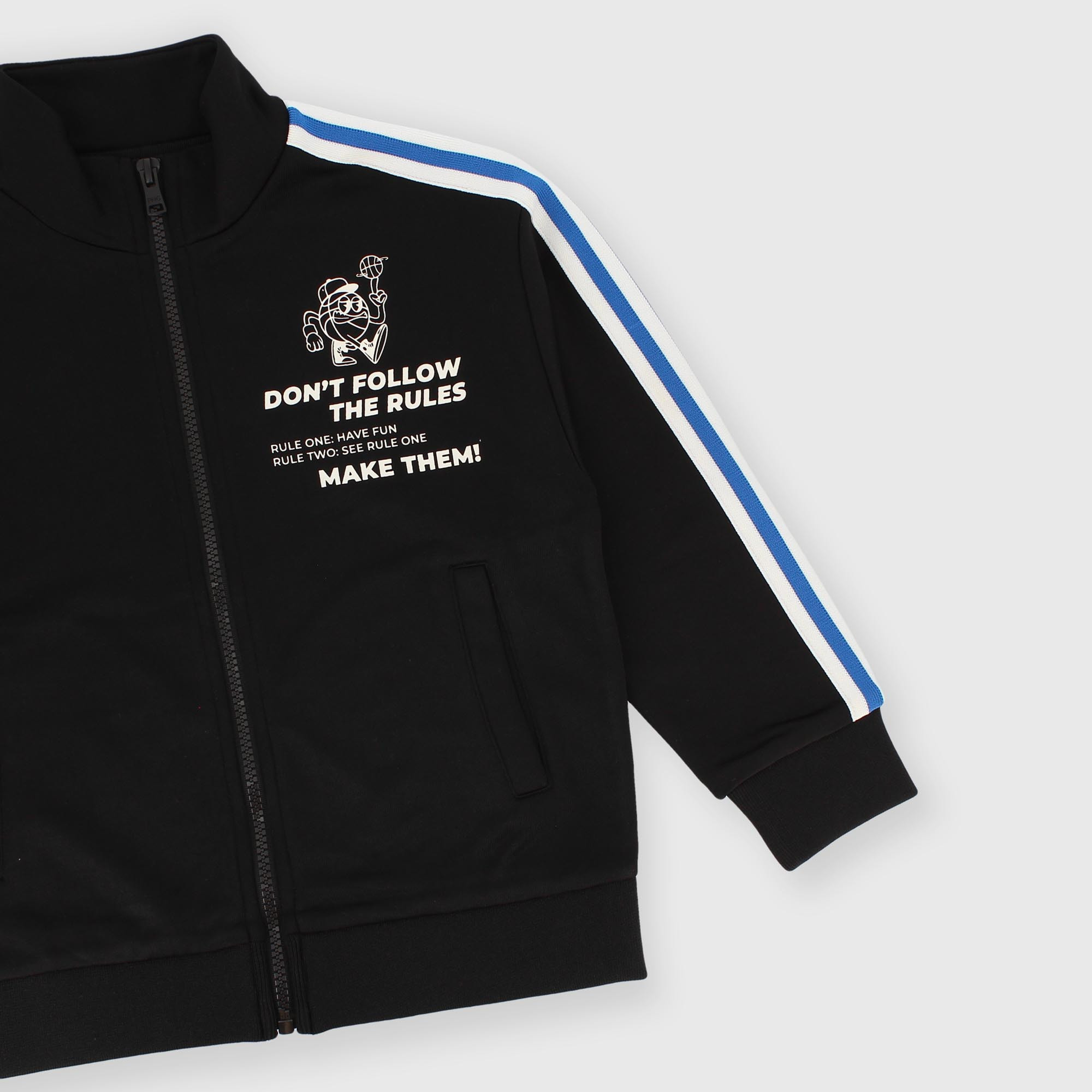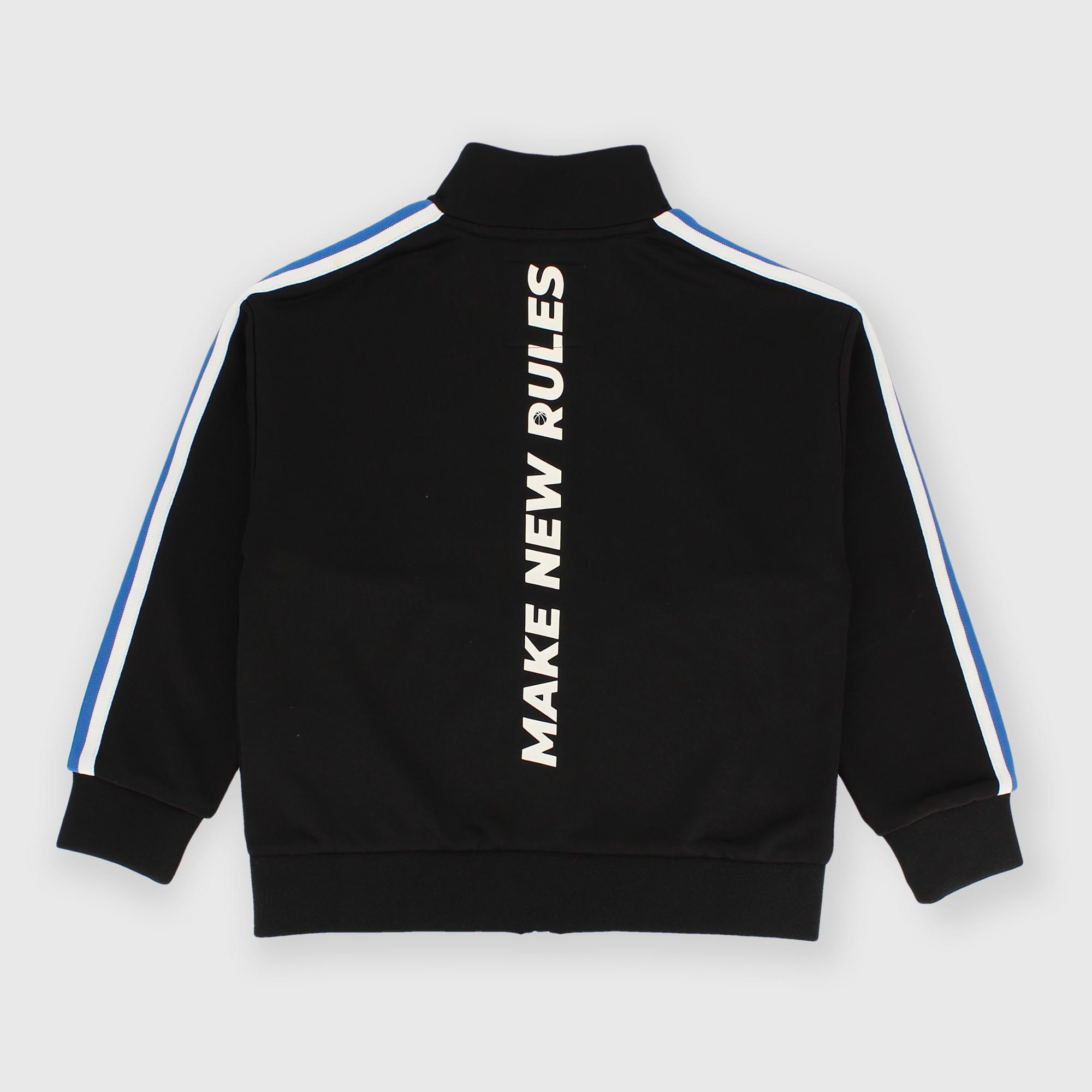 Sudadera de medio cuello de triacetato y mangas largas. Cierre frontal con cremallera. Bolsillos de ojal. Bandas laterales en contraste. Estampado efecto goma en el frente y en la espalda. Puños y bajo de canalé.