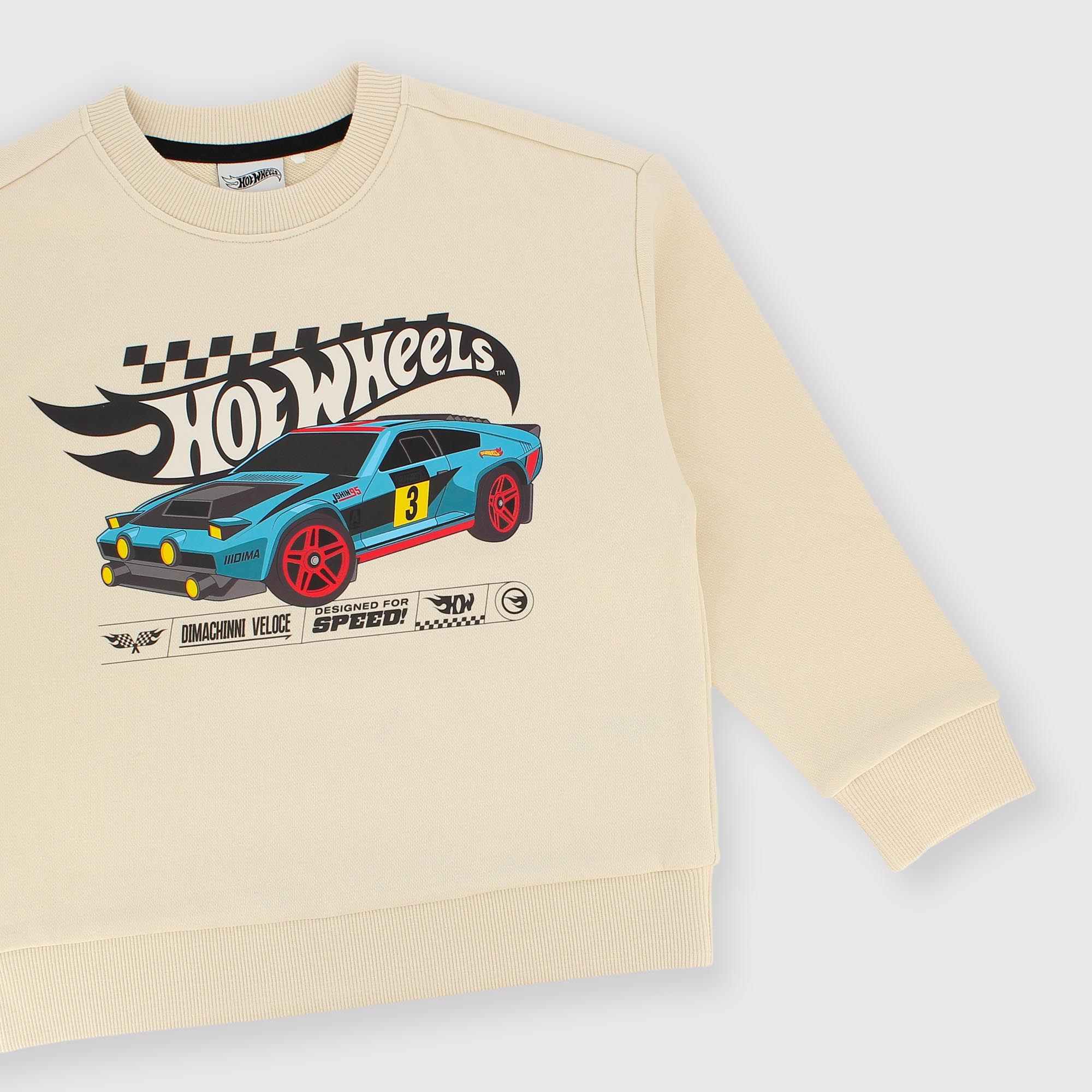 Sudadera Hot Wheels™ de cuello redondo y mangas largas. Cuello, puños y bajo de canalé. Estampados en el frente y en la manga. ®2026 Mattel.