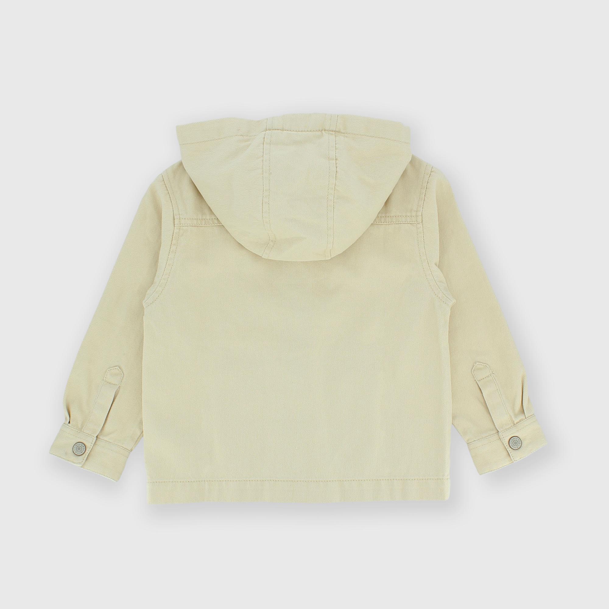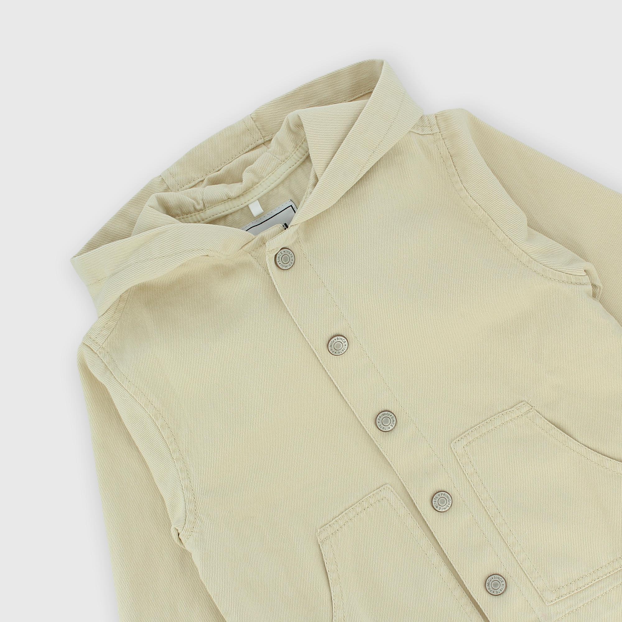Overshirt de tela de algodón con capucha, con mangas largas. Cierre con botones automáticos en la parte delantera. Bolsillo canguro anterior.