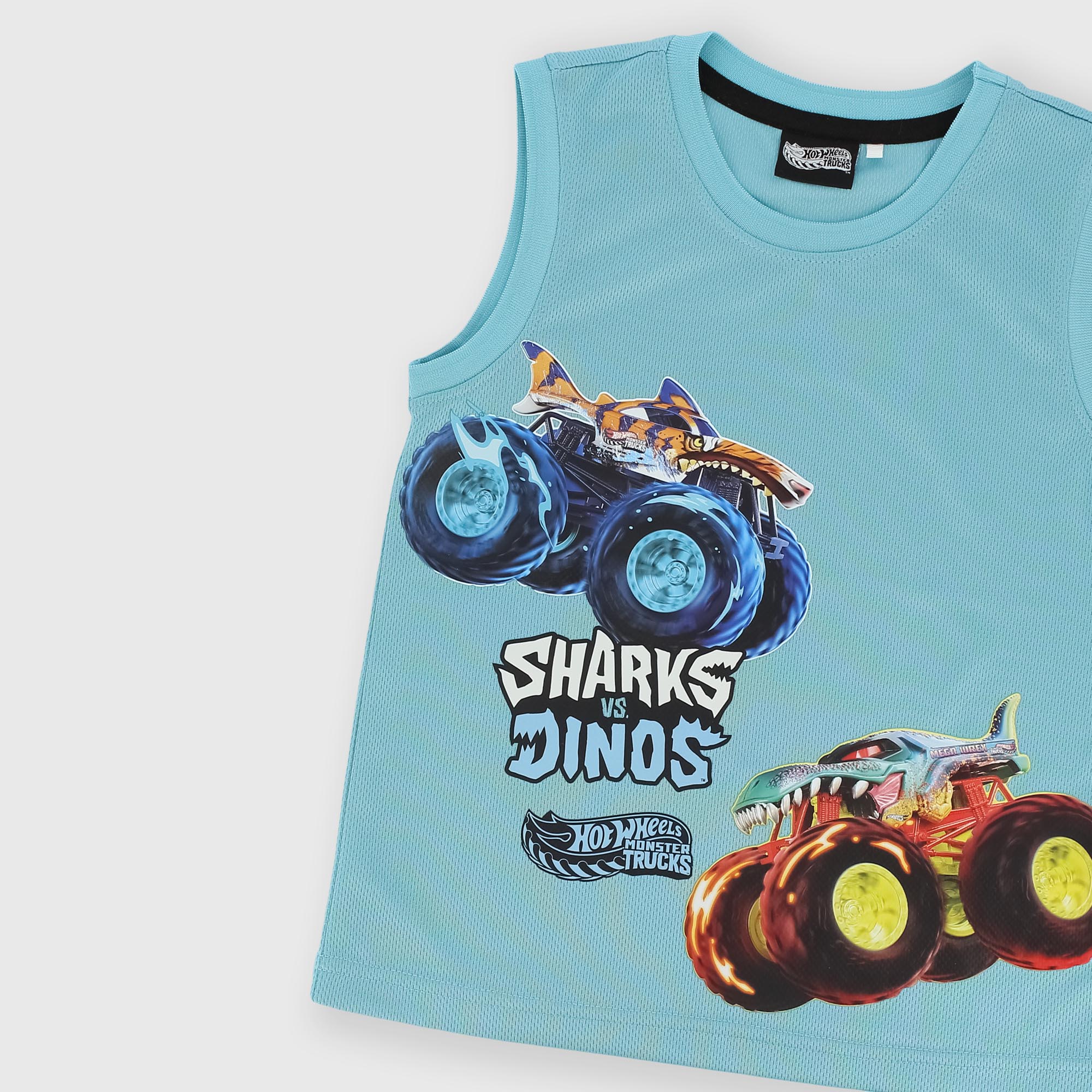 Conjunto Hot Wheels™ Monster Trucks de triacetato ligero compuesto por dos piezas. Camiseta sin mangas con cuello redondo y estampado en la parte delantera. Bermudas con cintura elástica y cordones frontales. Bolsillos laterales ocultos. Estampado en la pierna. ®2026 Mattel.