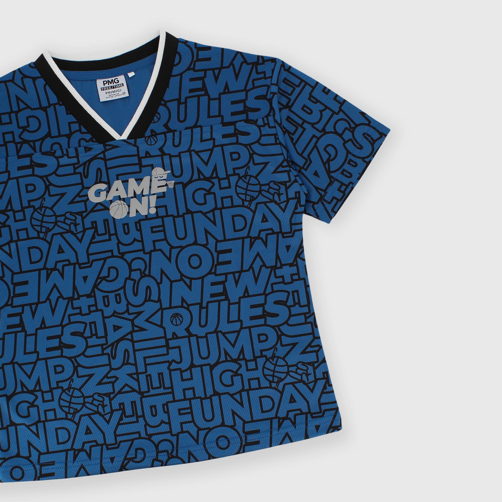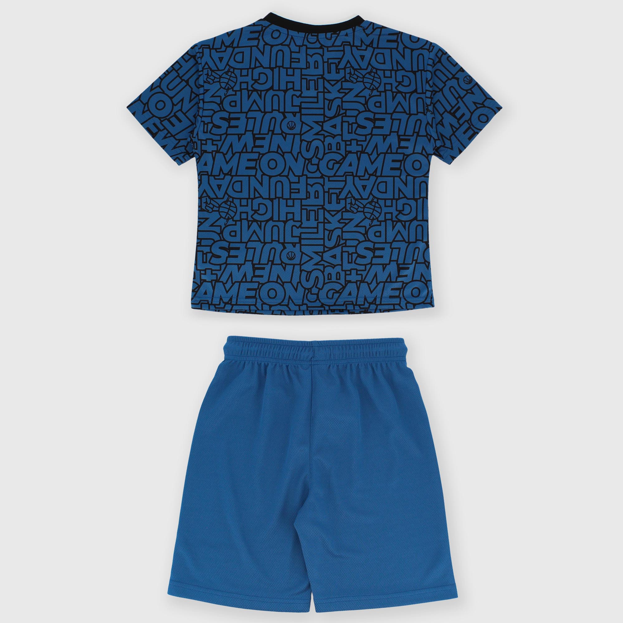 Conjunto de tejido técnico compuesto por dos piezas. Camiseta con escote en pico y manga corta. Estampado all over. Bermuda con cintura elástica y cordones frontales. Pequeño estampado en la parte delantera.