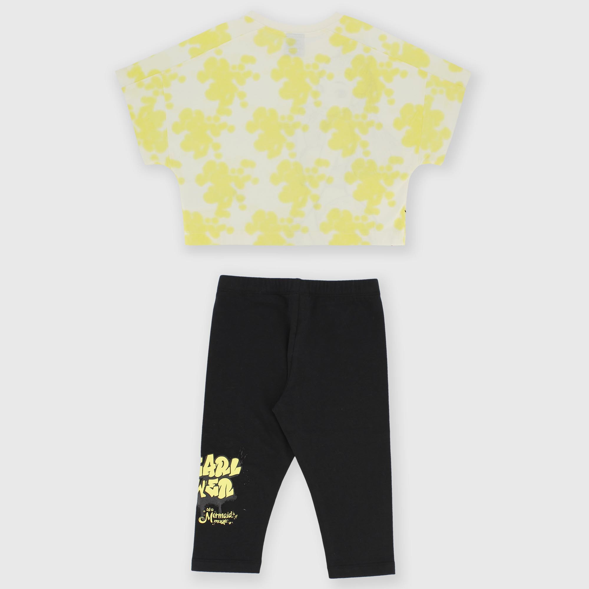 Conjunto Mermaid Magic™ compuesto por dos piezas. Camiseta de jersey con cuello redondo y manga corta. Estampado all over y en la parte delantera. Leggings cortos con cintura elástica y estampado en la pierna.
